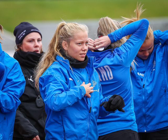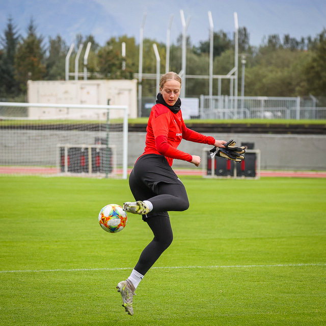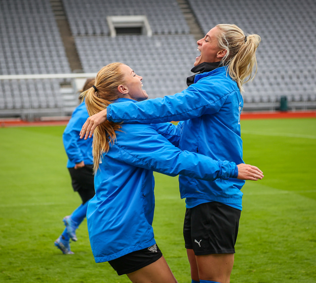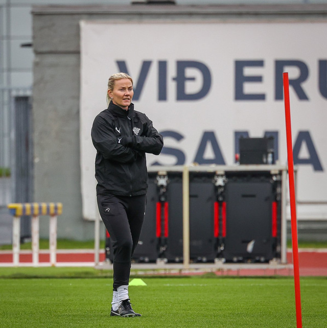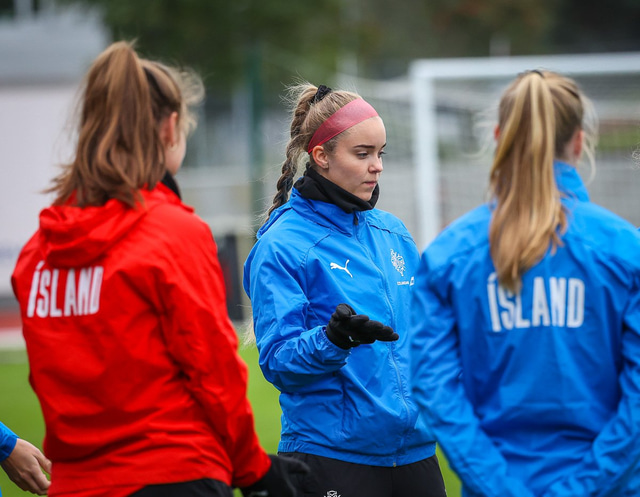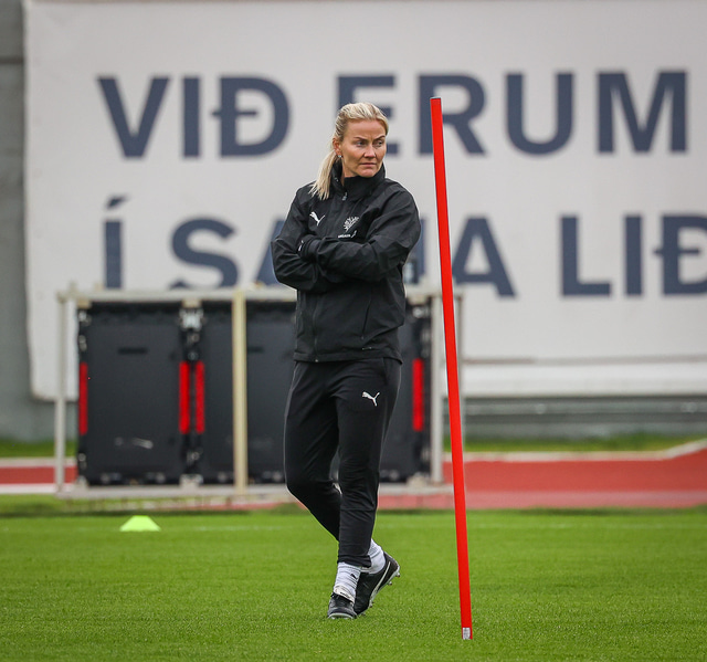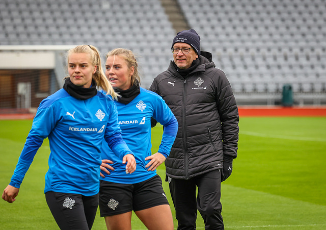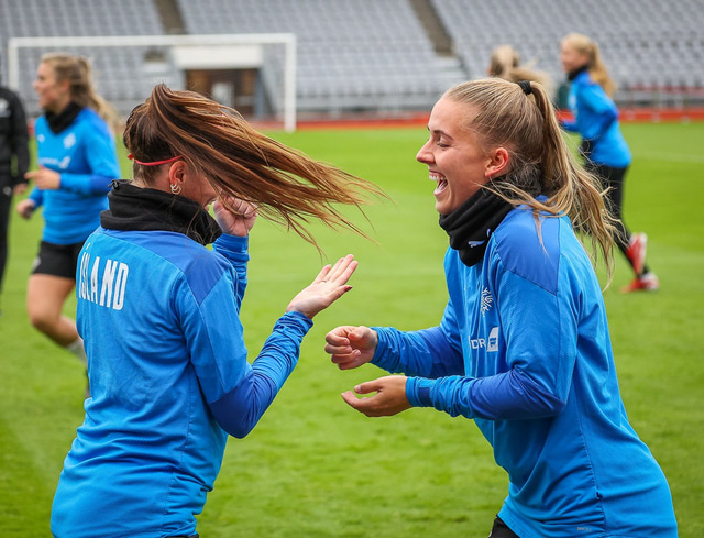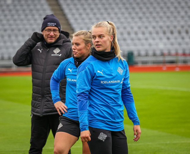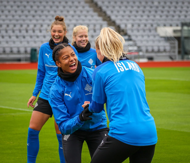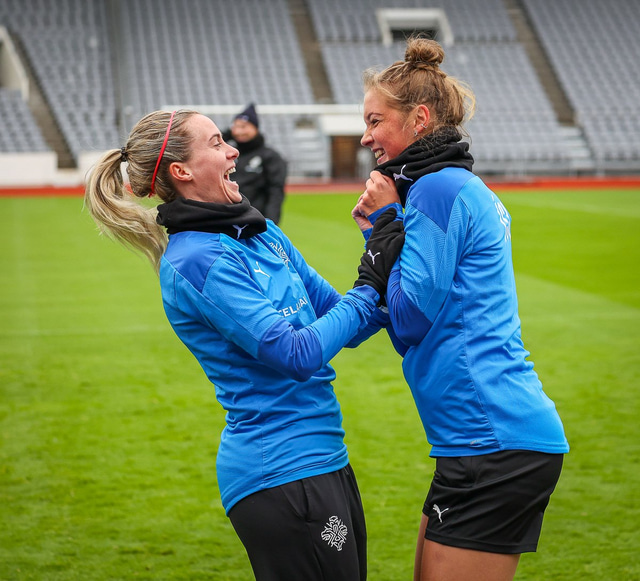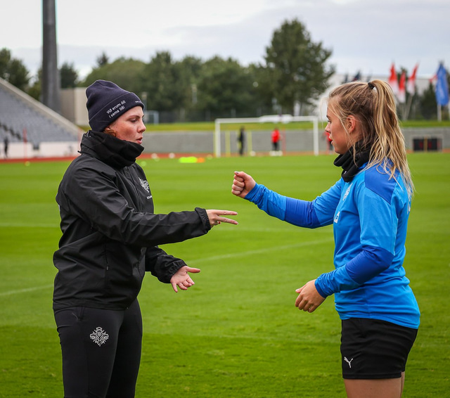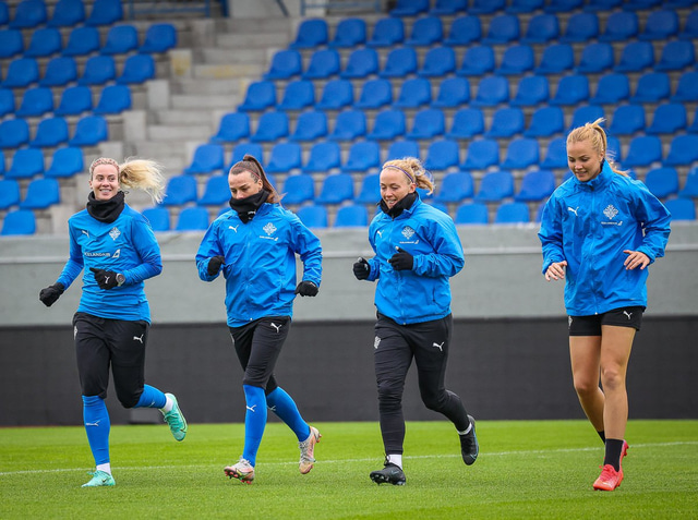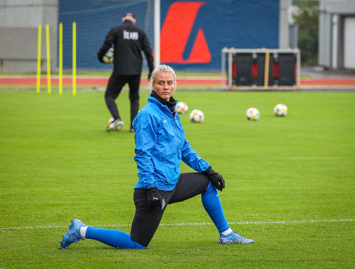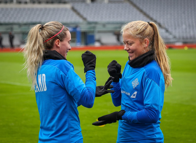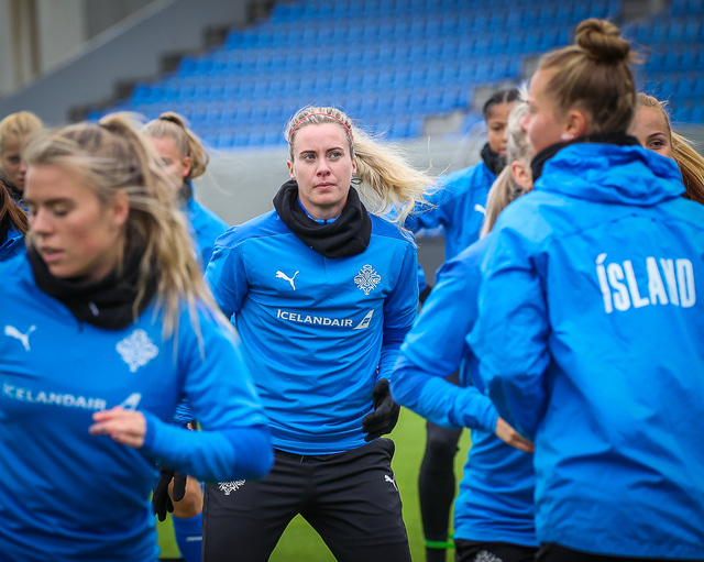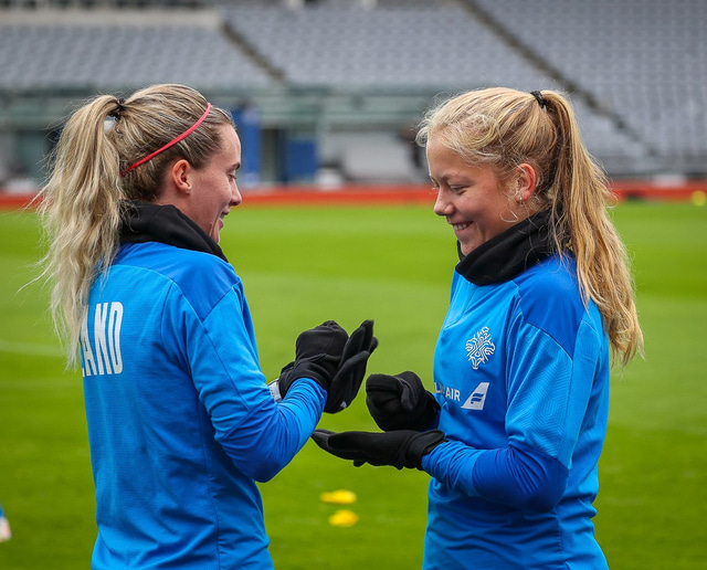 Kvennalandsliðið undirbýr sig nú af kappi fyrir stórleikinn við Hollandi í undankeppni HM 2023 sem fer fram á Laugardalsvelli á þriðjudagskvöldið. Stelpurnar æfðu í morgun í Laugardalnum og hér að neðan má sjá myndir af æfingunni þar sem mikið fjör var í steinn, skæri, blað.