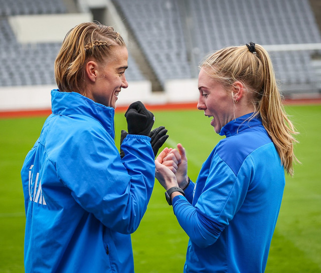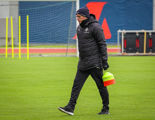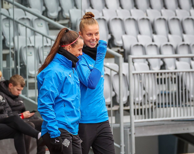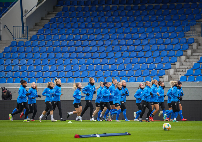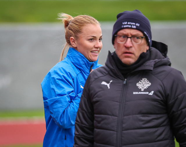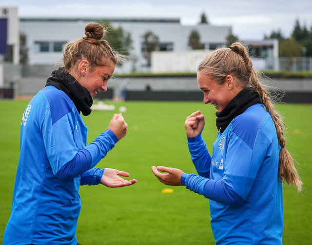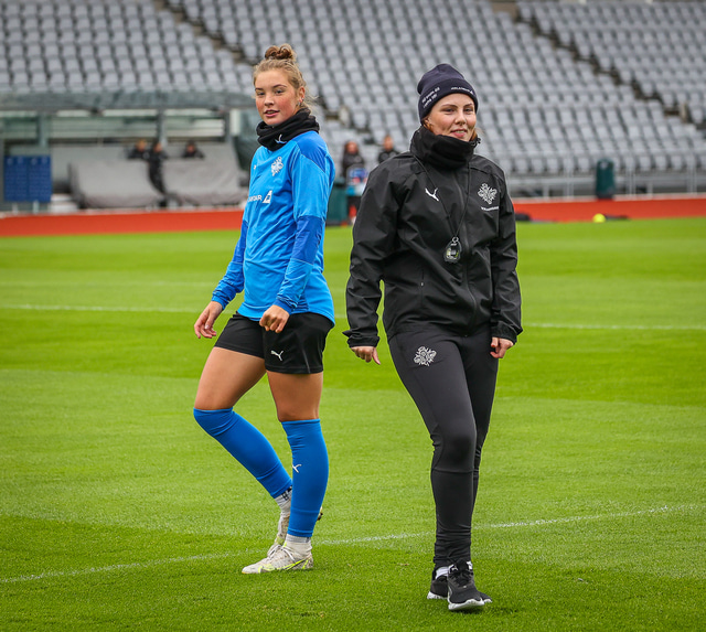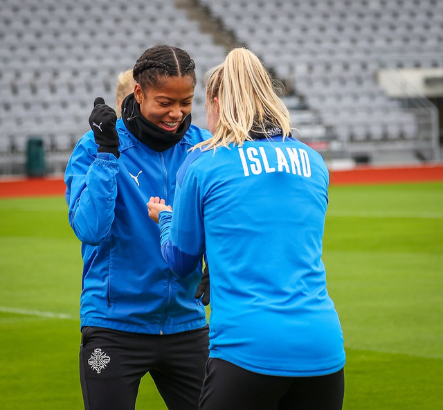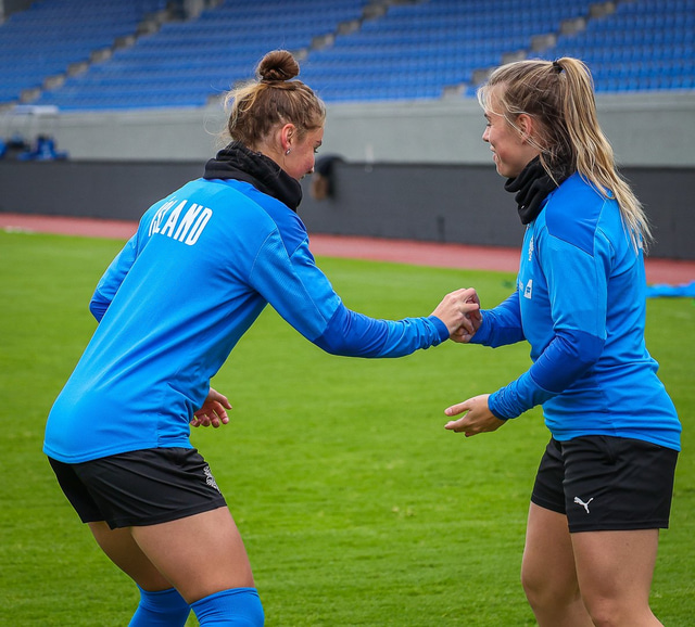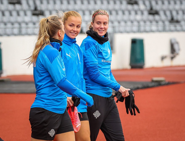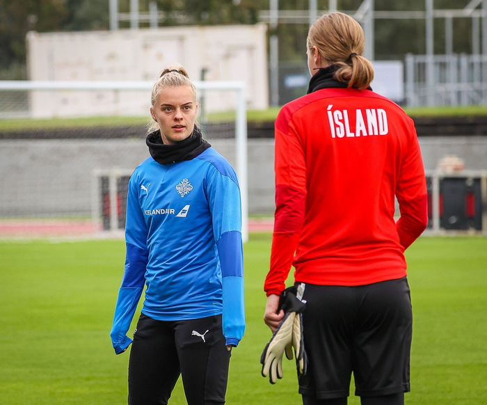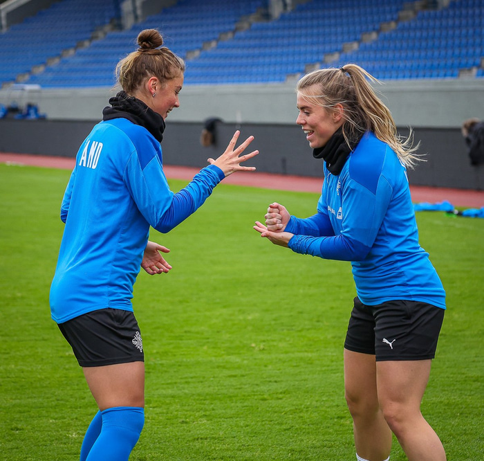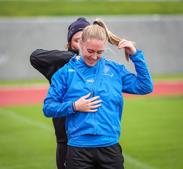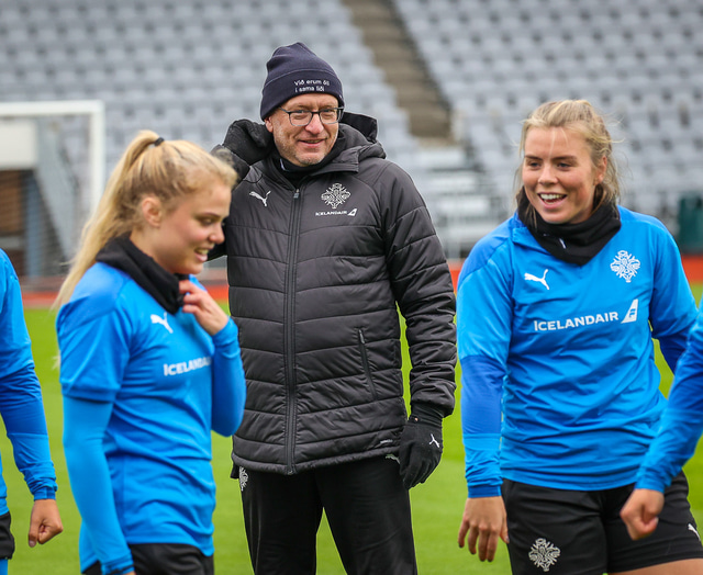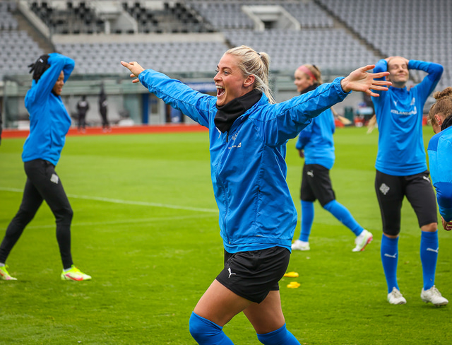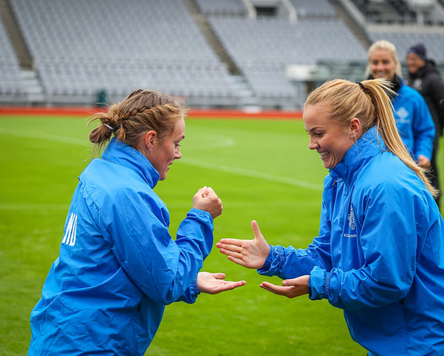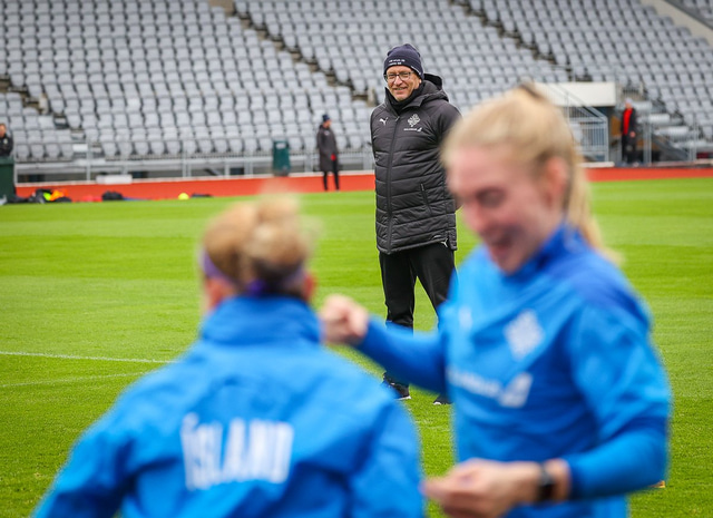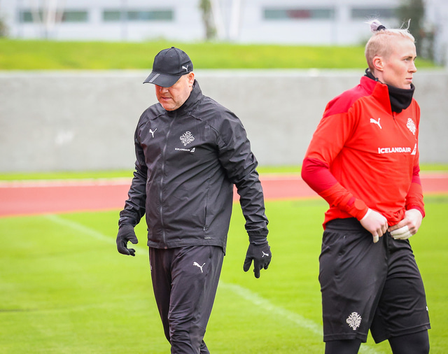 Kvennalandsliðið undirbýr sig nú af kappi fyrir stórleikinn við Hollandi í undankeppni HM 2023 sem fer fram á Laugardalsvelli á þriðjudagskvöldið. Stelpurnar æfðu í morgun í Laugardalnum og hér að neðan má sjá myndir af æfingunni þar sem mikið fjör var í steinn, skæri, blað.