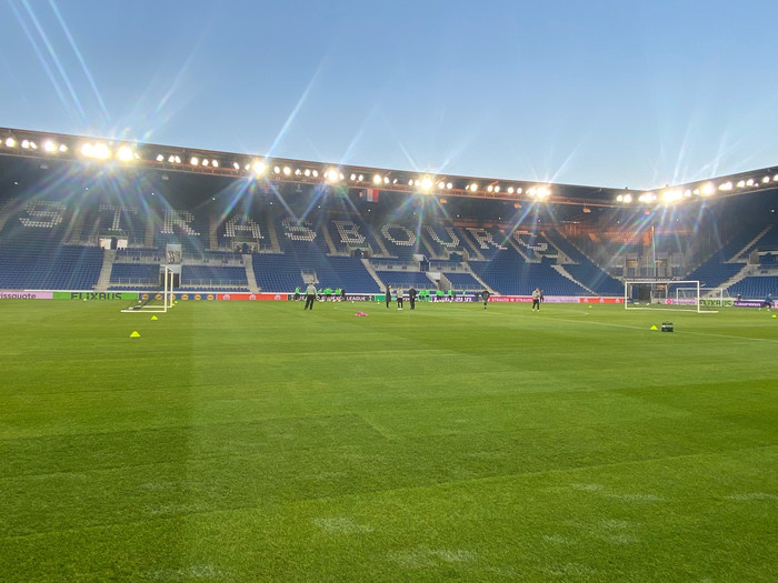Glænýtt hybrid gras er á vellinum, einungis hefur verið spilað á því einu sinni fyrir leikinn í kvöld. Hybrid gras er blanda af venjulegu grasi og gervigrasi. Það er t.d. hybrid-gras á Laugardalsvelli og æfingavæði FH.