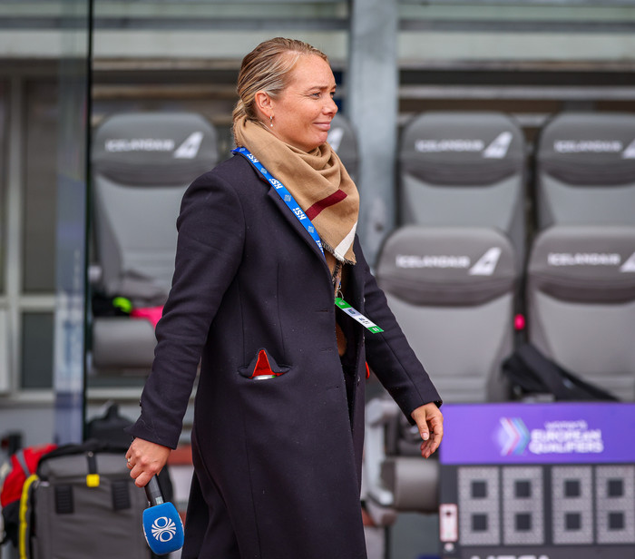 Þá gerði hún meðal annars grín af ummælum Eiðs Smára um að taka sig saman í andlitinu.