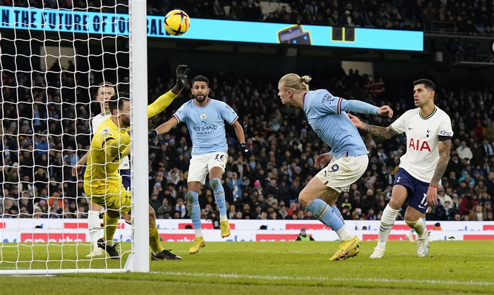 Erling Haaland kom sér nokkrum sínum í fína sénsa undir lok fyrri hálfleiks áður en gestirnir tóku forystuna. Ederson átti skelfilega sendingu frá marki sem var ætluð Rodri. Rodrigo Bentancur komst inn í sendinguna og fór boltinn þaðan til Dejan Kulusevski sem afgreiddi boltann í netið.