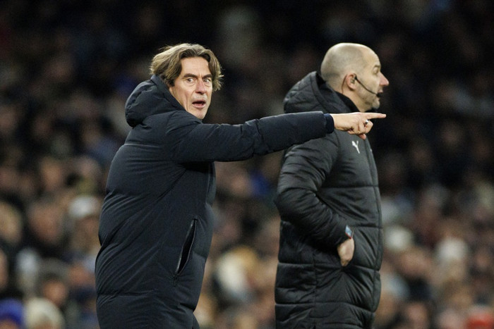 The Athletic segir að búist sé við því að Thomas Frank muni stýra Tottenham gegn Borussia Dortmund en starf hans hangi á bláþræði.