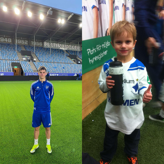 Mynd af Gabríel á heimavelli Norrköping frá því í október og svo ein í treyju Norrköping fyrir rúmum áratug síðan.