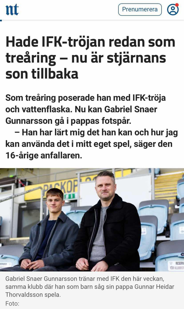 Í haust fór Gabríel Snær Gunnarsson á reynslu til sænska félagsins Norrköping. Gabríel Snær er leikmaður ÍA og er sonur Eyjamannsins Gunnars Heiðars Þorvaldssonar.