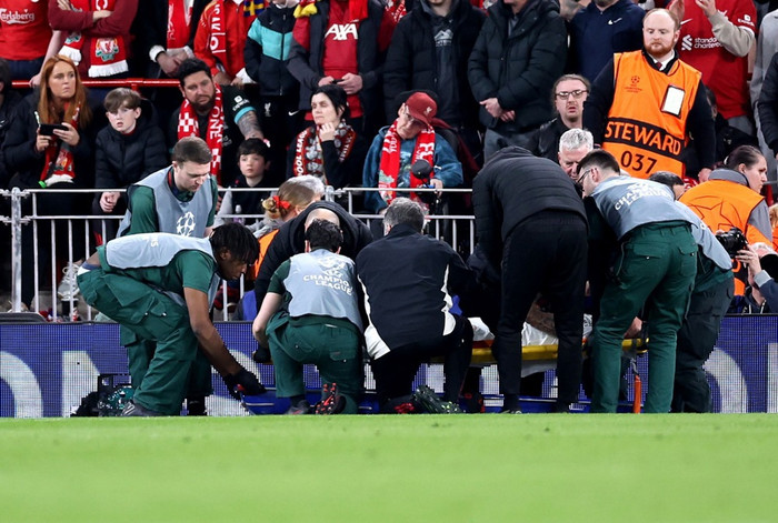 Noa Lang, leikmaður Galatasaray, er á leið í aðgerð á þumalfingri eftir að hafa slasast þegar hann lenti á auglýsingaskilti á Anfield.