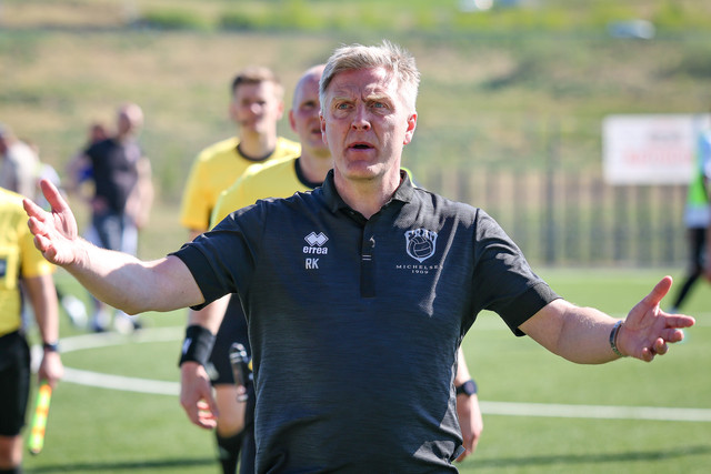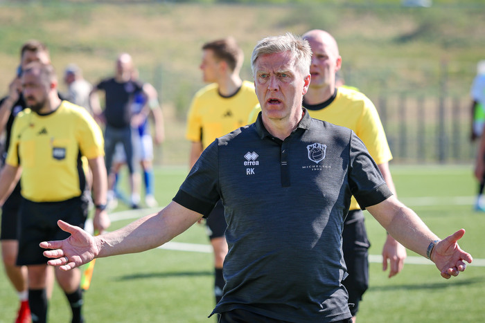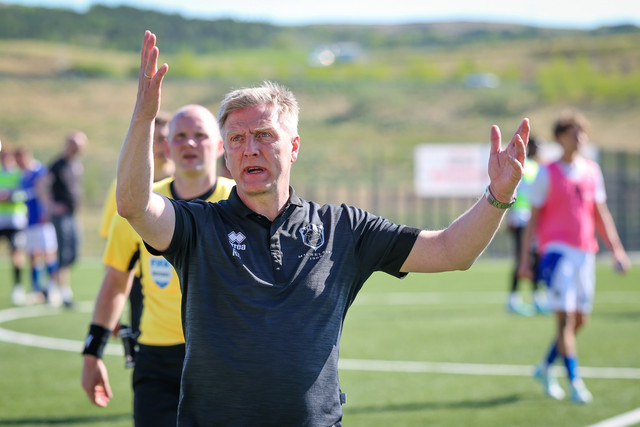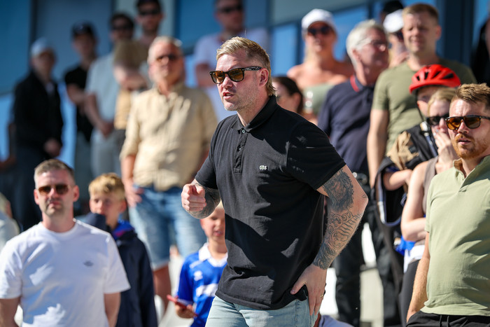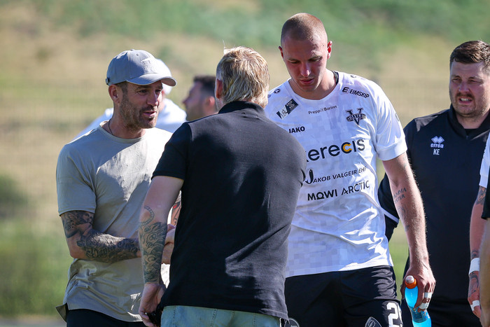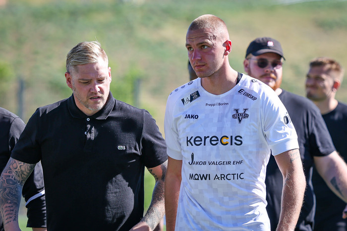 „Þeir lenda haus í haus inn í teig. Svo svimaði honum inn á vellinum og lagðist niður. Hann var aðeins vankaður. Líklega heilahristingur," sagði Davíð Smári um Grauberg. „Arnór Borg fór aftan í læri. Það er pínu svekkjandi en sem betur fer ekki alvarleg meiðsli, ekkert í neinu eða neitt svoleiðis. Við héldum það. fyrst en það er sem betur fer ekki það."