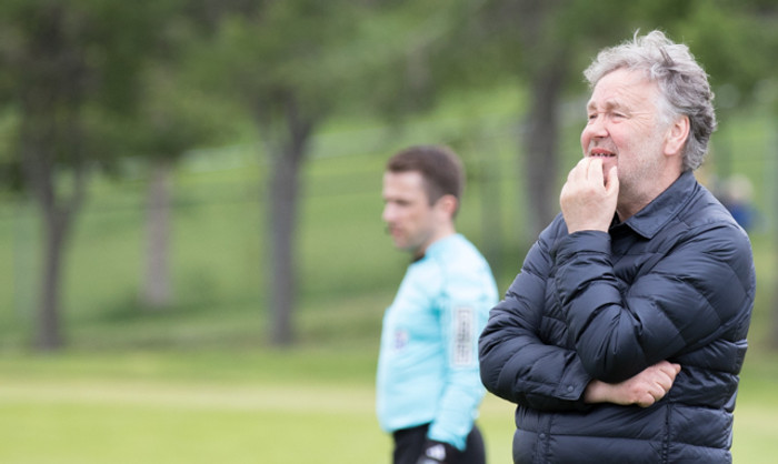 Dofri Snorrason fór meiddur af velli, kom aftur inn á, gaf víti og var síðan skipt út af stuttu síðar. „Ég veit ekkert hvort það hafi verið mistök. Dofri treysti sér til að halda áfram og var búinn að spila vel í leiknum, þá er engin ástæða til að taka hann af velli. Hann er hraustur. Dúklagningamaður sem er mikið á hnjánum,“ sagði gleðigjafinn Logi Ólafsson.