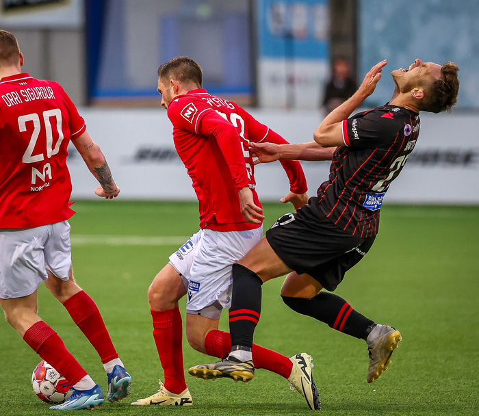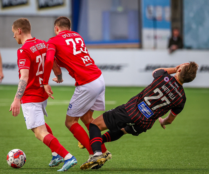 Matthías var enn að kveinka sér þegar hann gekk af velli í lokin en myndir af þessum brotum má sjá með fréttinni að neðan. Þar sést Aron skamma Ívar Orra fyrir að hafa ekkert fengið fyrir sinn snúð.