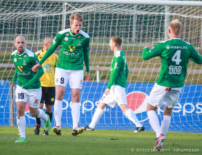 Elfar Árni missti meðvitund eftir höfuðhögg á fjórðu mínutu leiksins gegn KR í gærkvöldi og í kjölfarið var leik hætt.