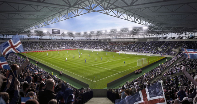 Á fréttamannafundi í dag voru kynntar tillögur að nýjum Laugardalsvelli sem gæti auk fótboltaleikja hýst tónleika, ráðstefnur og aðra íþróttaviðburði. Hér að neðan má sjá nokkrar tillögur að útliti vallarins sem fjölmiðlamönnum var kynnt í dag. Þar kom fram að ríki og borg hafa samþykkt að skipa starfshóp með það að markmiði að byggja völlinn. Hann gæti verið tilbúinn 2020 og tæki 20 þúsund í sæti á leik, 25 þúsund á tónleikum.