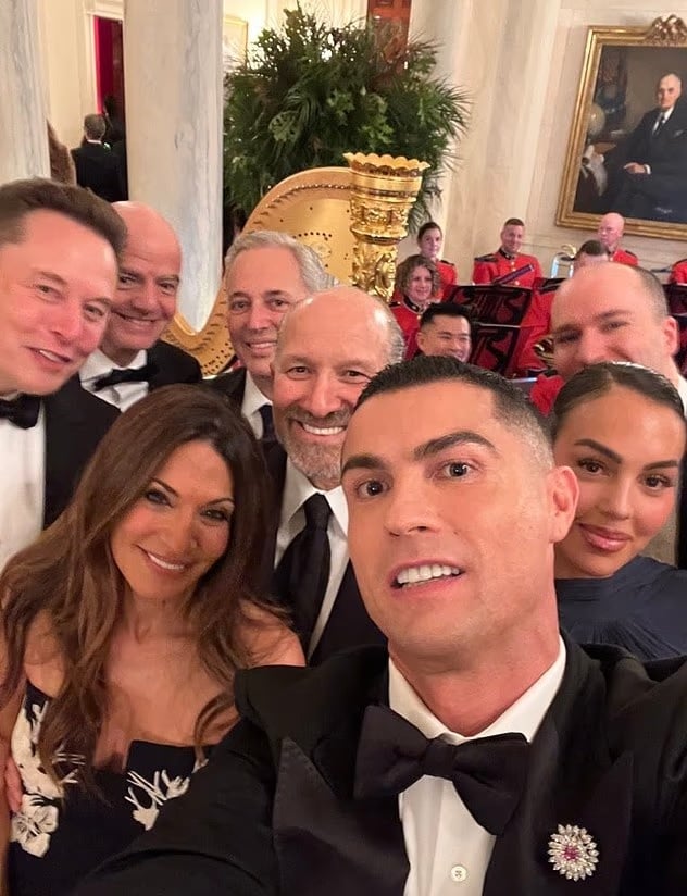 Ronaldo, sem spilar fyrir Al-Nassr í Sádi-Arabíu, birti mynd af sér á samfélagsmiðlum en Gianni Infantino, forseti FIFA, og Elon Musk er meðal þeirra sem prýða myndina.