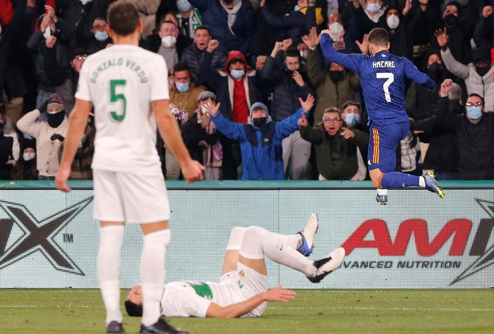 Elche tók forystuna í framlengingunni þegar Gonzalo Cacicedu Verdu skoraði, en rétt áður en markið kom hafði Real Madrid misst bakvörðinn Marcelo af velli með rautt spjald.