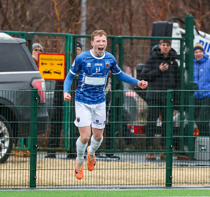 Freyr skoraði eina mark leiksins í fyrri hálfleik í sínum fyrsta byrjunarliðsleik í efstu deild.
