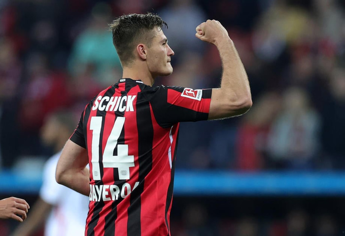 Patrick Schick kom Leverkusen yfir á útivelli gegn St. Pauli. Hann skoraði eftir hálftíma leik þegar hann skallaði boltann í netið eftir aukaspyrnu frá Alex Grimaldo.
