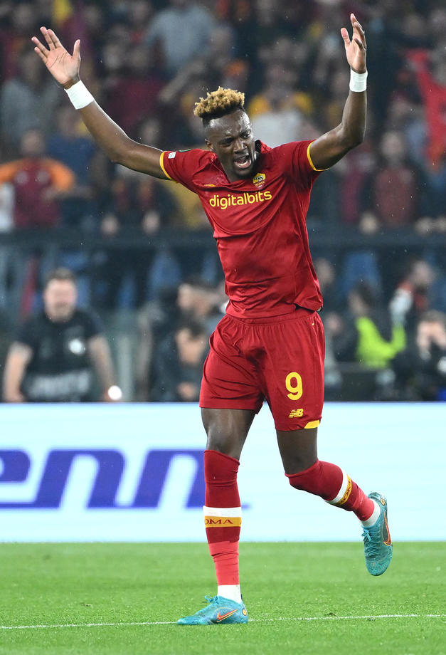 Tammy Abraham átti frábæran leik fyrir Roma í kvöld en hann skoraði tvö mörk í fyrri hálfleik og eitt þeirra úr vítaspyrnu.