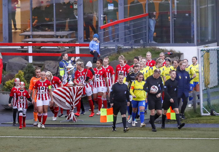 Staðan var markalaus eftir bragðdaufan fyrri hálfleik en heimastúlkur misstu Margréti Regínu Grétarsdóttur af velli með tvö gul spjöld í upphafi síðari hálfleiks.