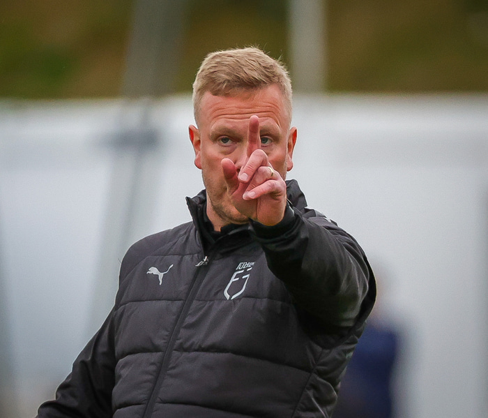 „Jafn leikur sem gat dottið báðum megin. Einn 'cross' sem Silas gerir helvíti vel að koma honum réttum megin við stöngina, en annars lokaður leikur og 0-0 hefði verið sanngjörn úrslit, en þeir náðu inn einu og það er hálfleikur í þessu einvígi og við erum bara brattir fyrir seinni leiknum.“