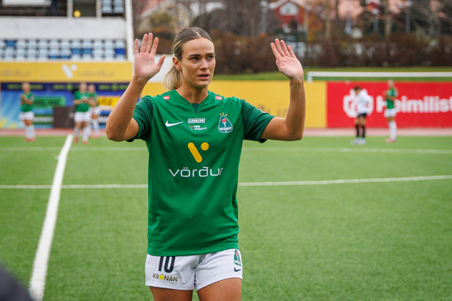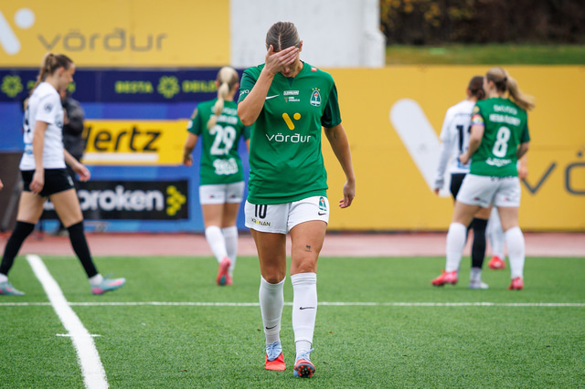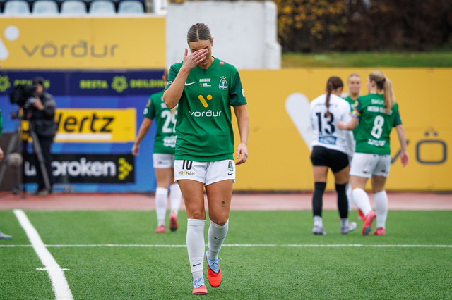 Hún byrjaði leikinn og fór svo af velli strax á 1. mínútu leiksins. Inn fyrir hana kom markadrottningin Berglind Björg Þorvaldsdóttir.