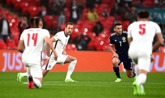 Enska landsliðið hefur stundað að krjúpa fyrir upphafsflaut leikja síðan George Floyd lést af völdum lögreglu fyrir rúmum tveimur árum.