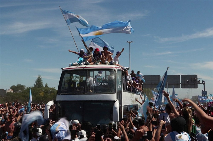 Argentínska landsliðið ferðaðist um borgina í opinni rútu á meðan tæplega sex milljónir komu og fögnuðu með liðinu.