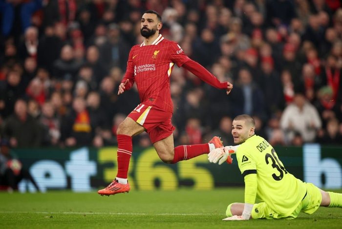 Leikurinn í kvöld fór rólega af stað en ellefu mínútum fyrir hálfleik fékk Mo Salah frábæra seningu frá Curtis Jones og skoraði sitt 50. Evrópumark fyrir Liverpool.