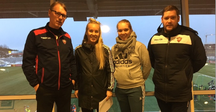 Pétur Pétursson þjálfari Vals, Elísa Viðarsdóttir, Margrét Lára Viðarsdóttir og Andri Steinn Birgisson aðstoðarþjálfari.