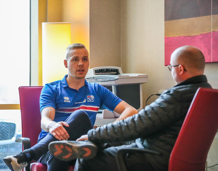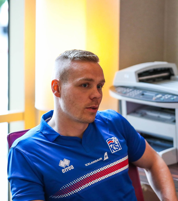 „Þetta er svipuð tilfinning og að taka bolta frá litlu barni sem vill leika sér. Ég hef verið í fótbolta síðan ég gat staðið. Það er frábært að geta verið kominn aftur en vissulega var þetta erfiður tími. Það var erfitt að fylgjast með landsliðinu í undankeppninni og geta ekki tekið þátt. Þetta var frábær undankeppni og sterkt að geta haldið svona dampi eftir velgengnina á EM, það kom mörgum á óvart. Liðið átti 100% skilið að vinna riðilinn"