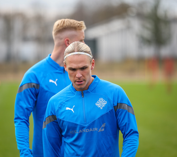 „Það er geggjað að undankeppnin sé að byrja, mikilvægir leikir og mikið undir. Liðið er vel gírað og það er ég líka," segir Arnór.