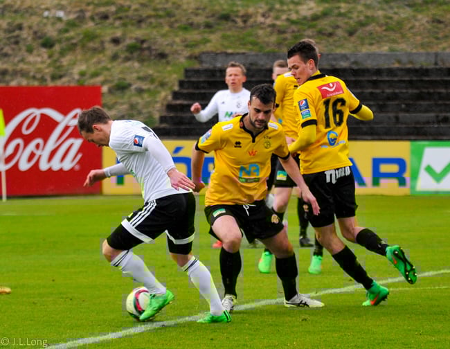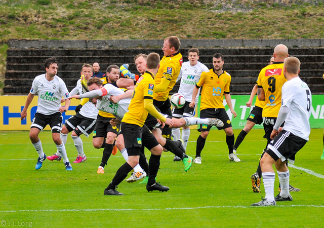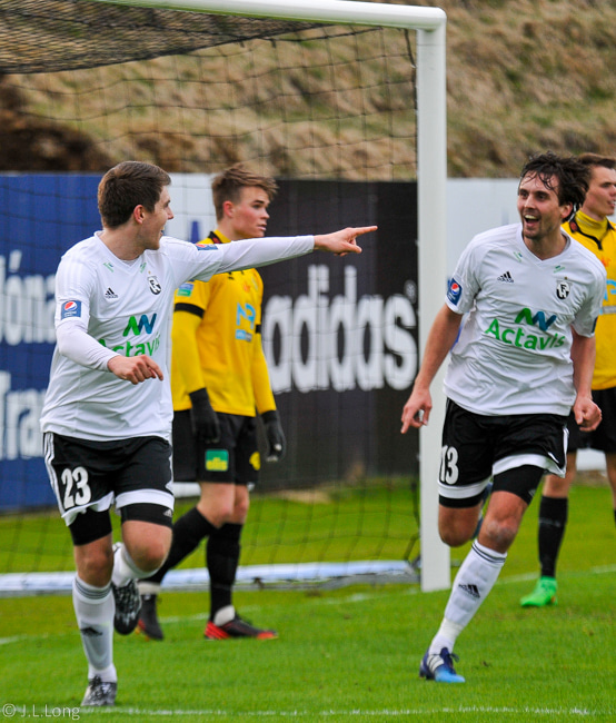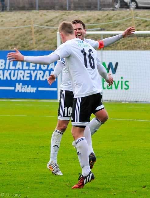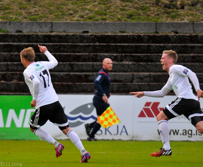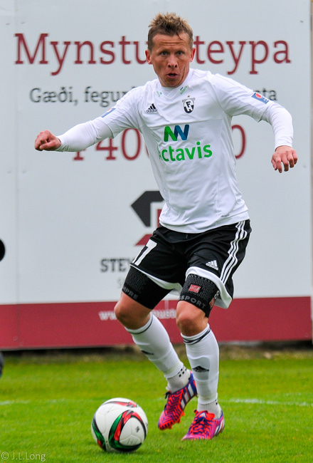 Atli Viðar Björnsson framherji FH var í sviðsljósinu í gær þegar FH vann ÍA 4-1. Hann skoraði sitt 100. mark í efstu deild fyrir félagið í leiknum.