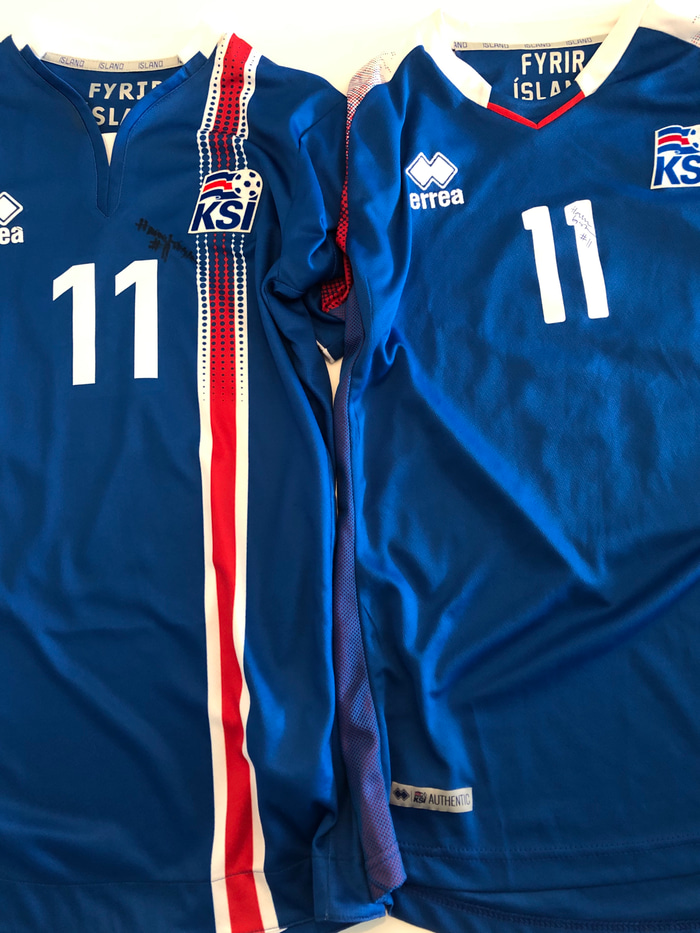 Hallbera Guðný Gísladóttir er með tvær áritaðar Íslenskar landsliðstreyjur á lottó uppboði ágóði mun renna til Kvenna athvarfsins.