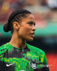Um tveimur mínútum síðar var Sveindís sloppin ein í gegn eftir varnarmistök hjá Essen. Sophia Winkler, markvörður Essen, hljóp út úr markinu og sparkaði kröftuglega í sköflunginn á Sveindísi sem féll í grasið. Winkler fékk að líta rauða spjaldið fyrir brotið en Sveindís gat ekki haldið leik áfram.