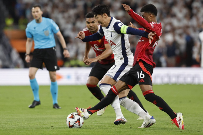 Heung-Min Son vann sinn fyrsta bikar í atvinnumennsku er Tottenham varð Evrópudeildarmeistari eftir 1-0 sigur á Manchester United í Bilbao í kvöld.