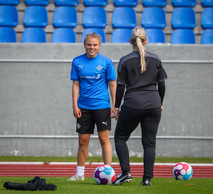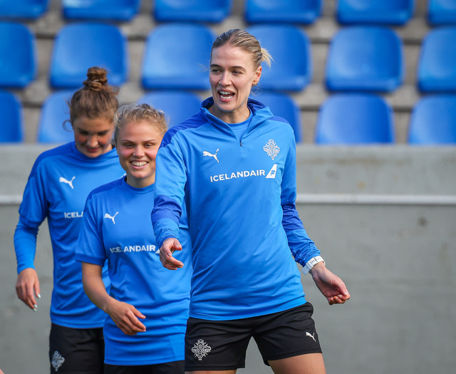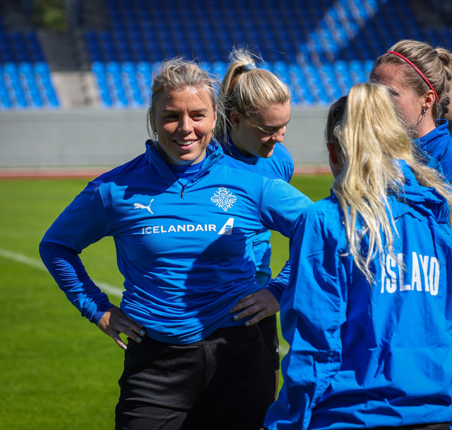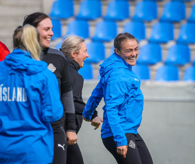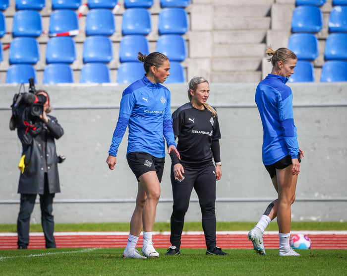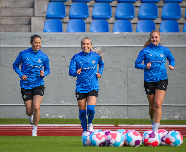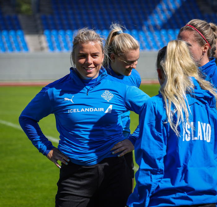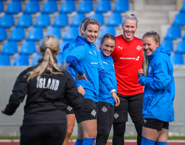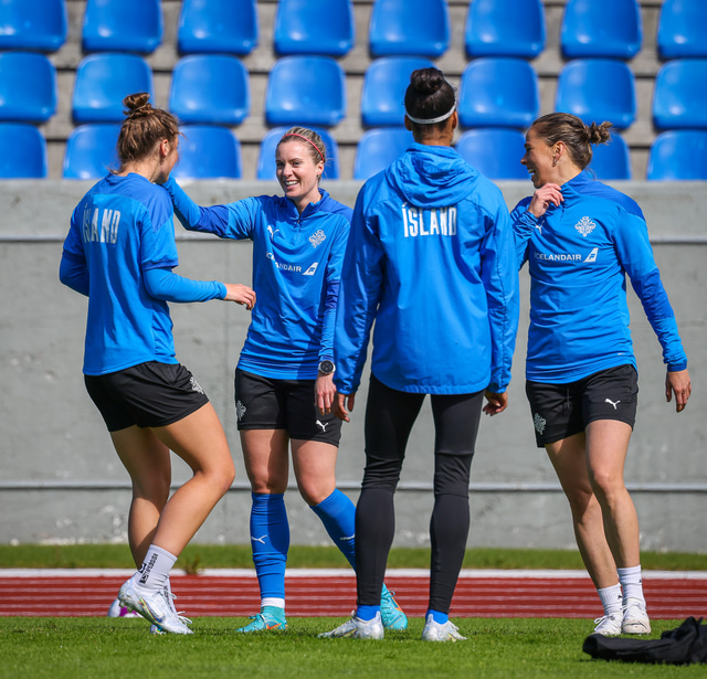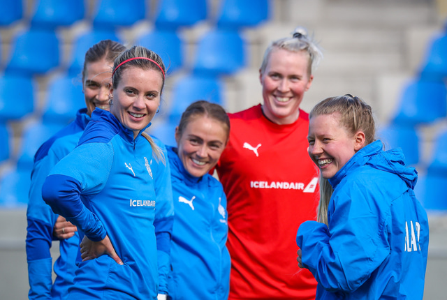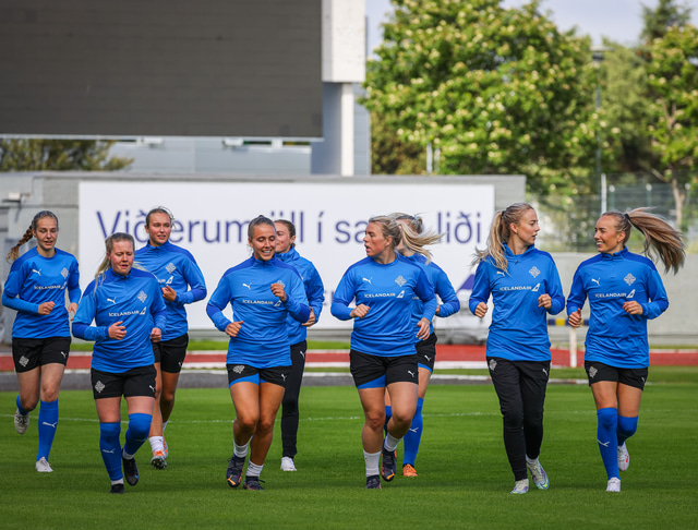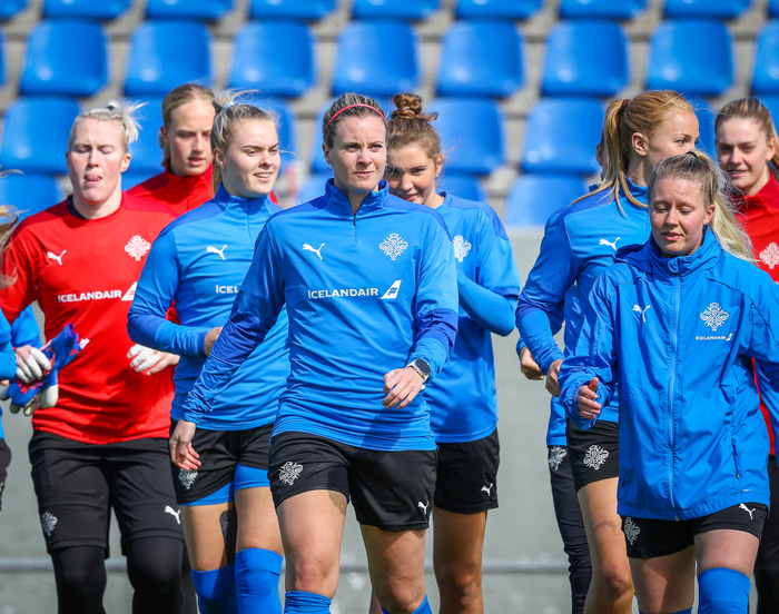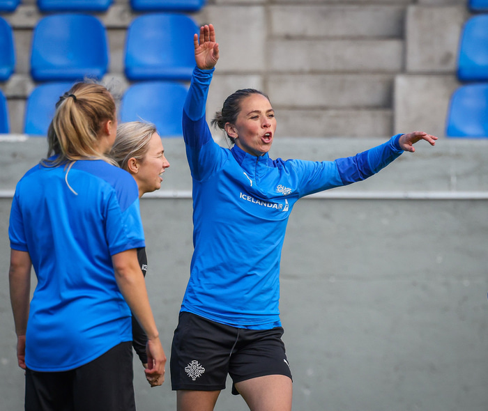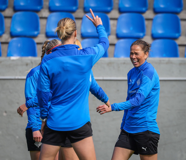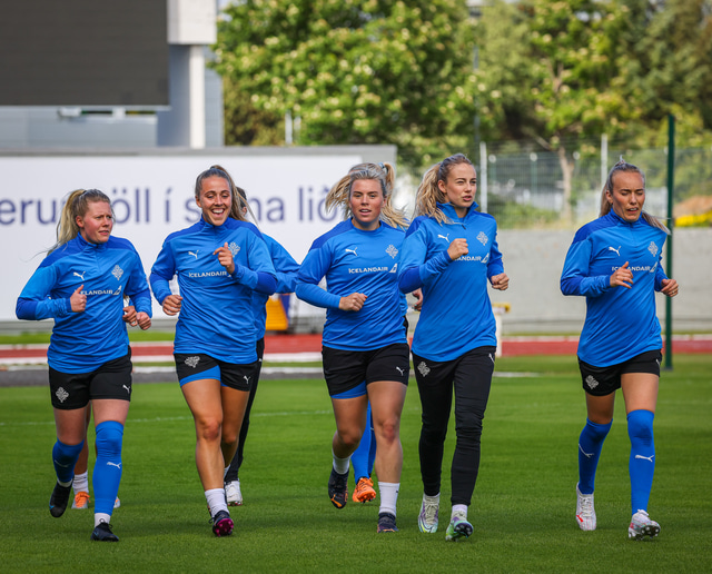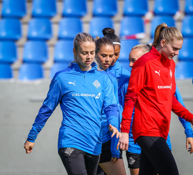 Ísland æfði í Laugardalnum í gær en þetta var fyrsta æfing liðsins fyrir Evrópumót kvennalandsliða sem fer fram í Englandi í sumar. Hér að neðan má sjá myndir af æfingunni.