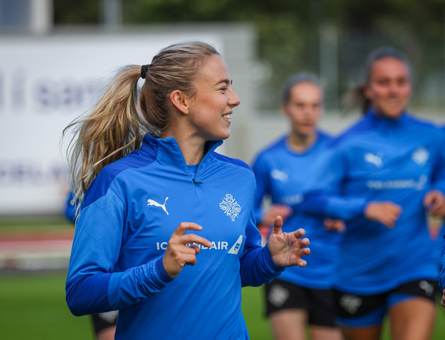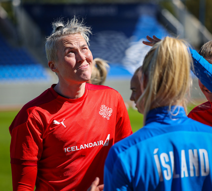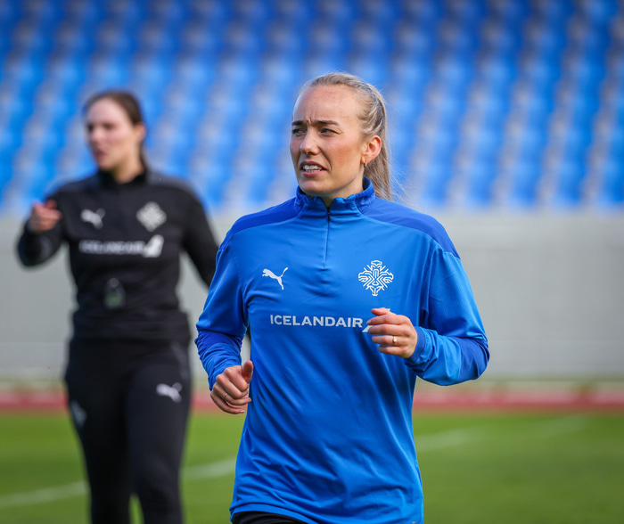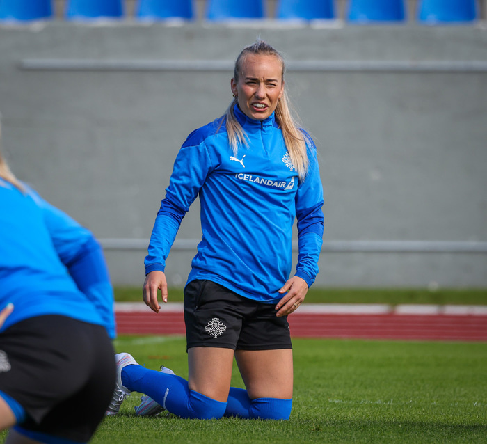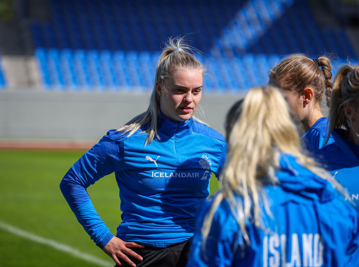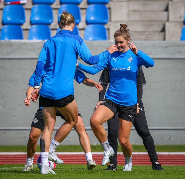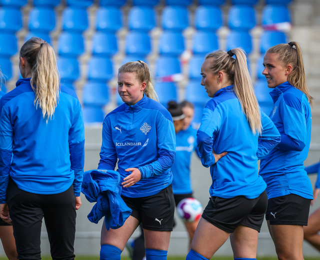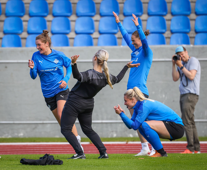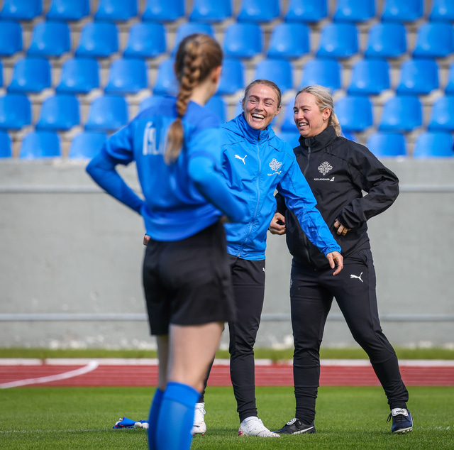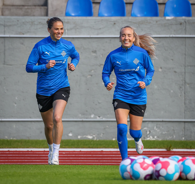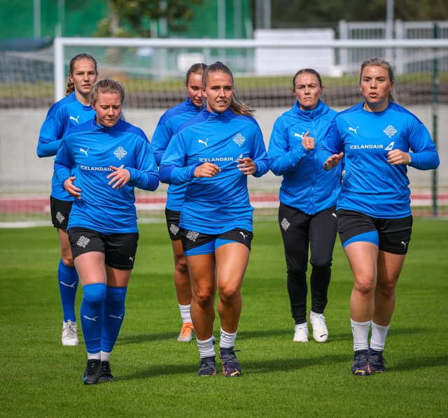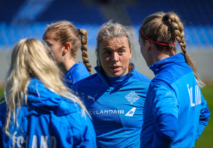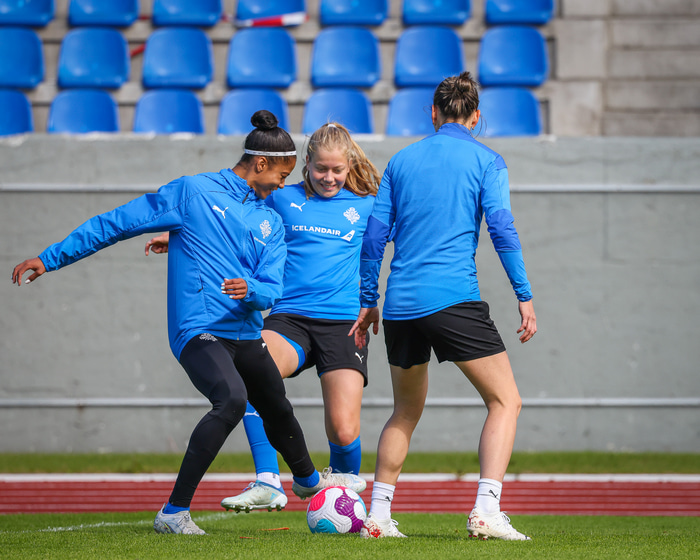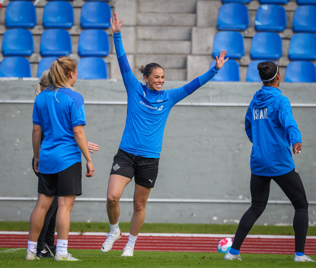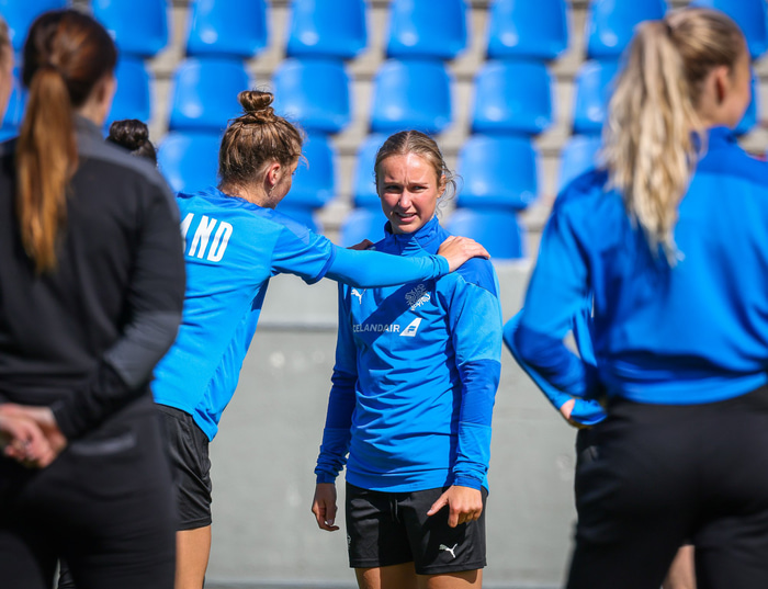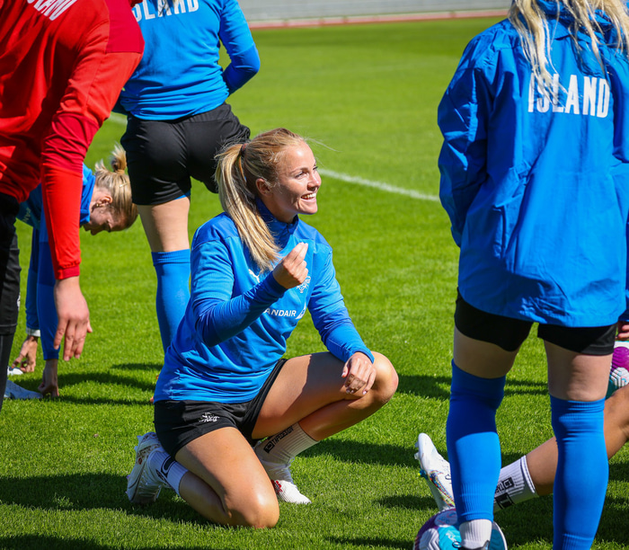 Ísland æfði í Laugardalnum í gær en þetta var fyrsta æfing liðsins fyrir Evrópumót kvennalandsliða sem fer fram í Englandi í sumar. Hér að neðan má sjá myndir af æfingunni.