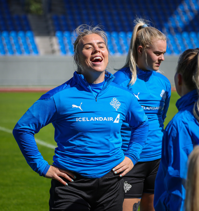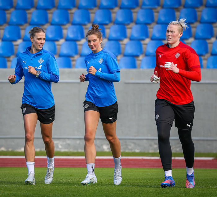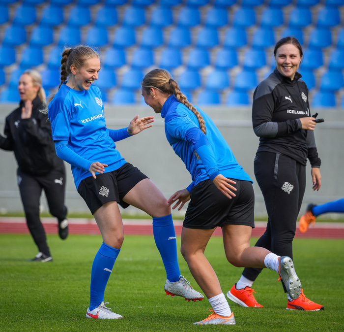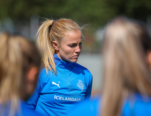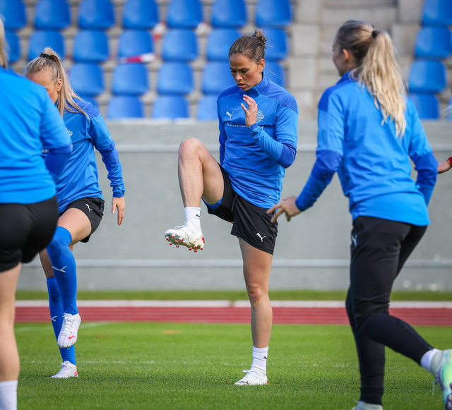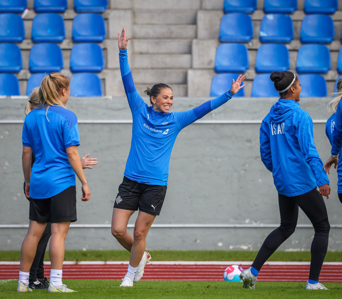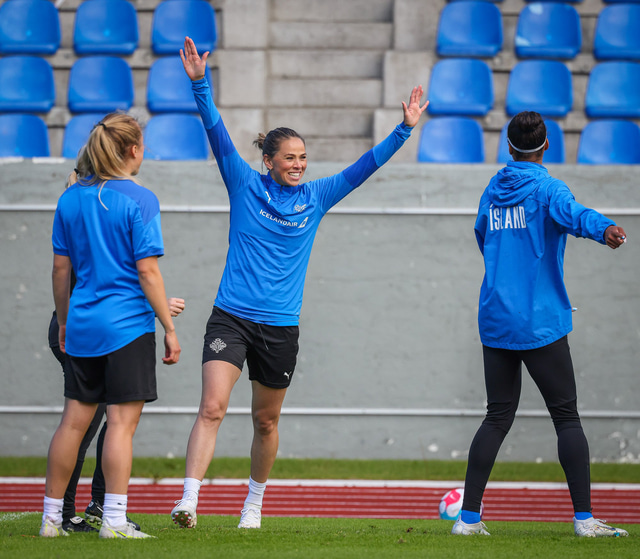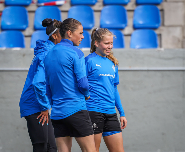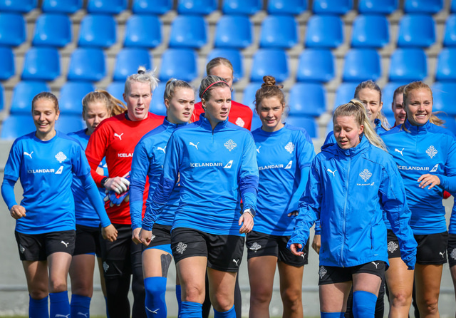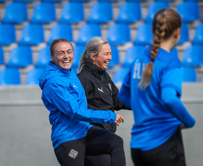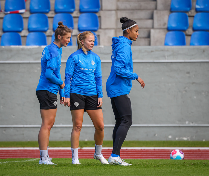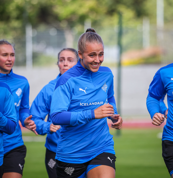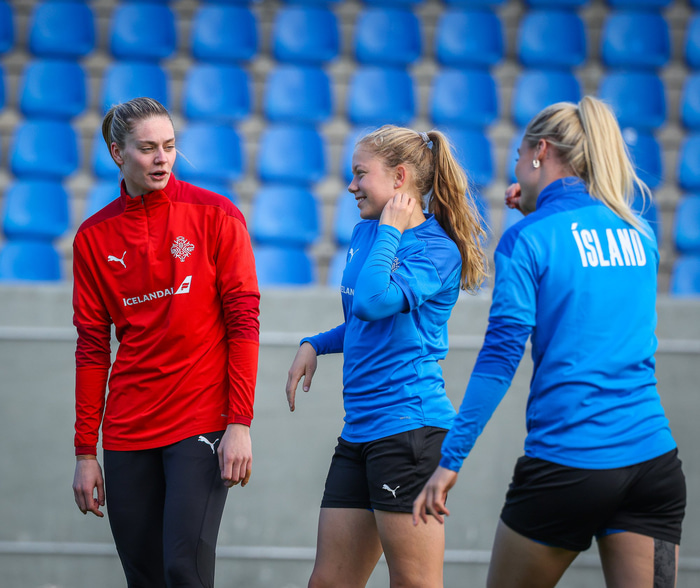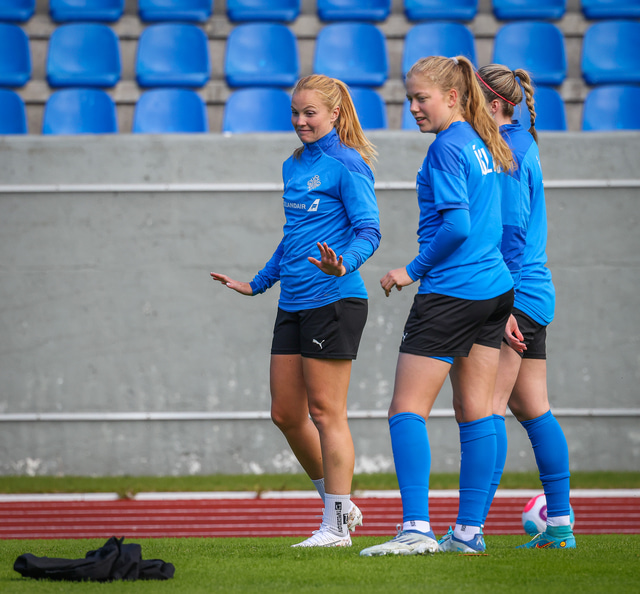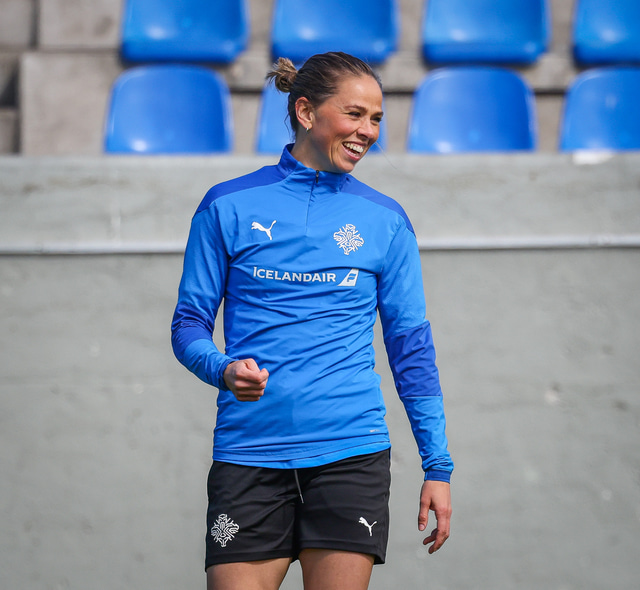 Ísland æfði í Laugardalnum í gær en þetta var fyrsta æfing liðsins fyrir Evrópumót kvennalandsliða sem fer fram í Englandi í sumar. Hér að neðan má sjá myndir af æfingunni.