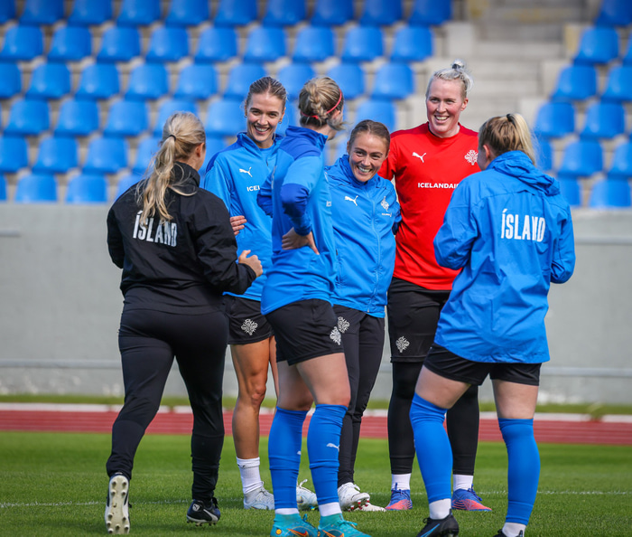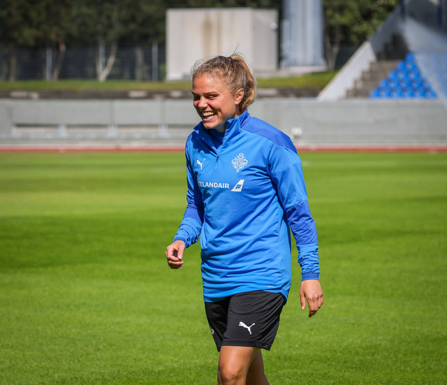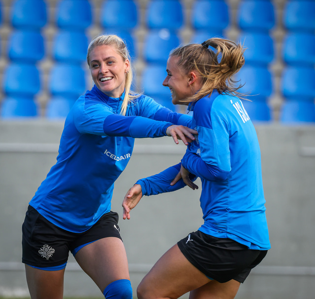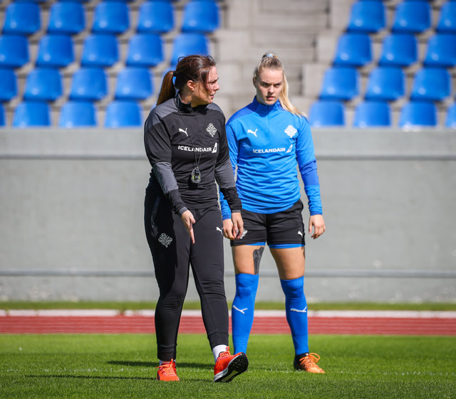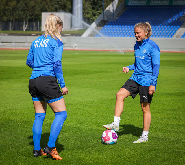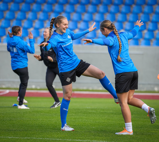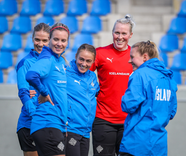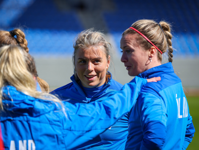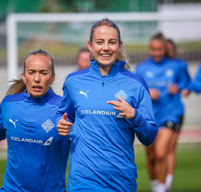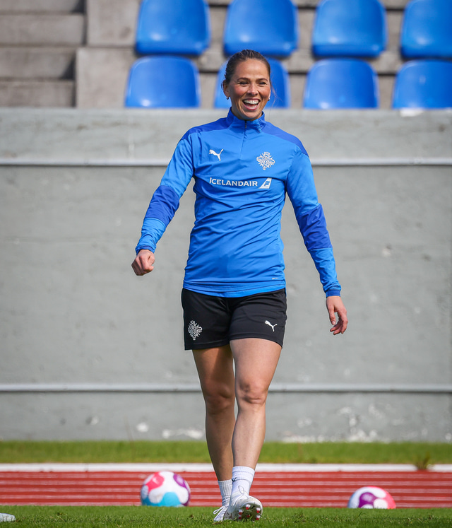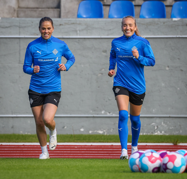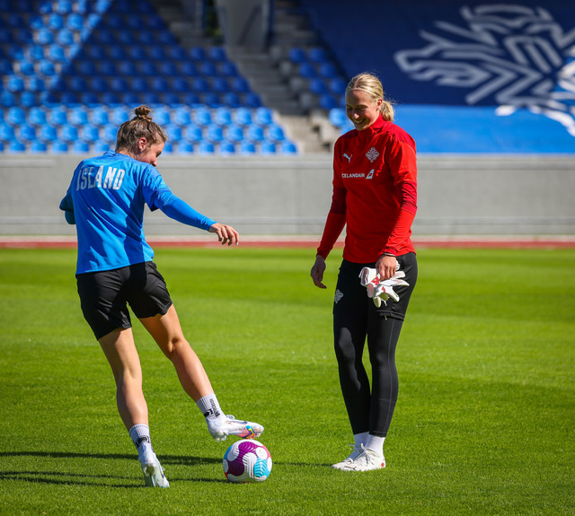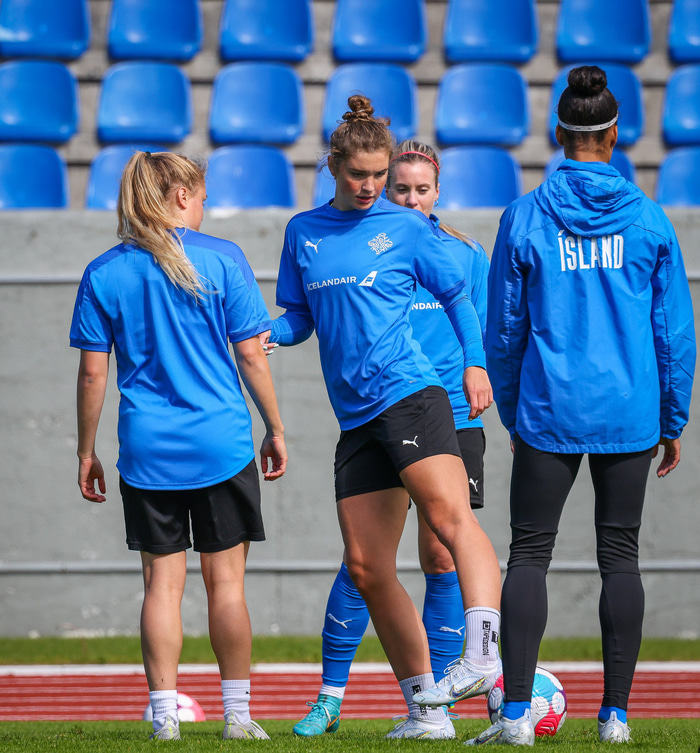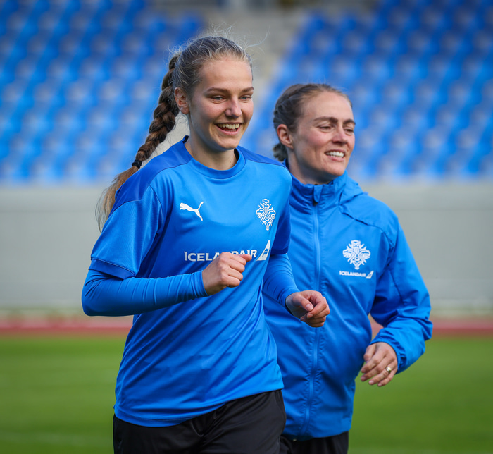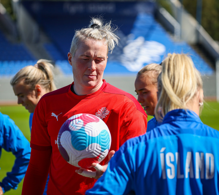 Ísland æfði í Laugardalnum í gær en þetta var fyrsta æfing liðsins fyrir Evrópumót kvennalandsliða sem fer fram í Englandi í sumar. Hér að neðan má sjá myndir af æfingunni.