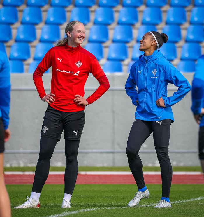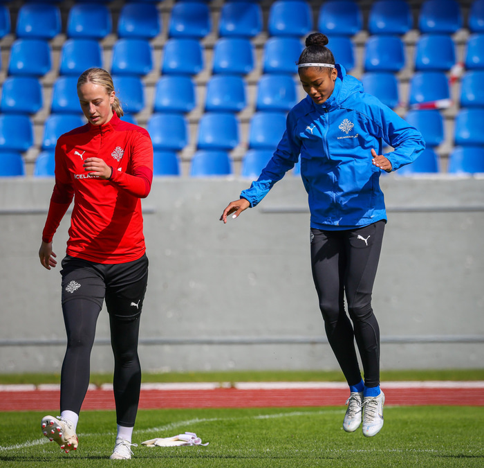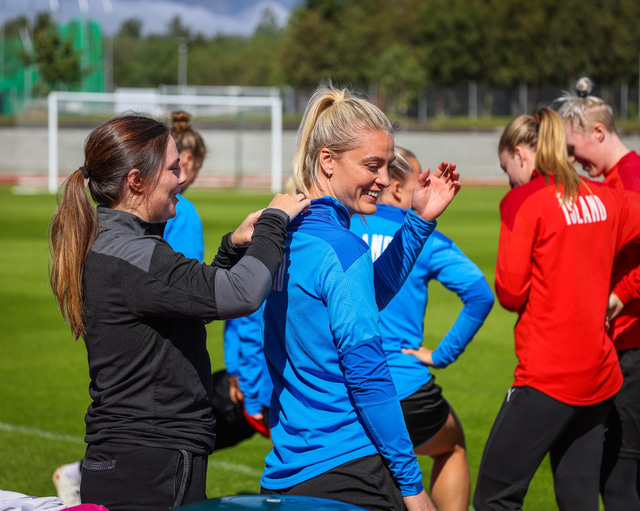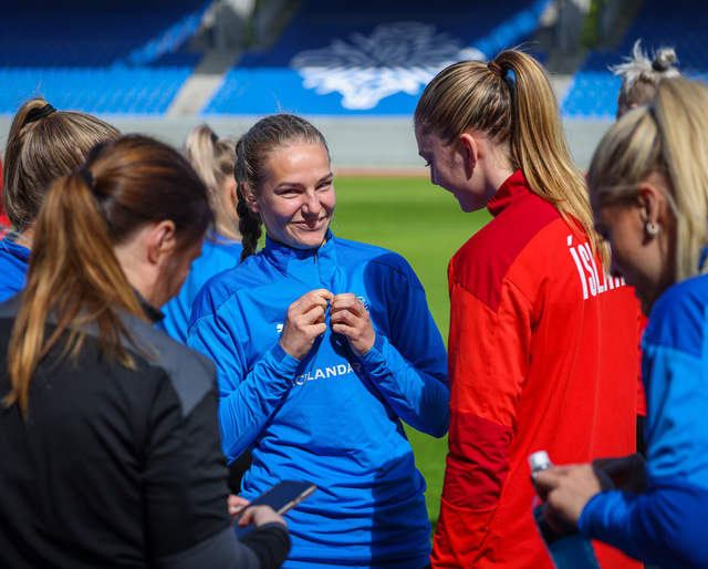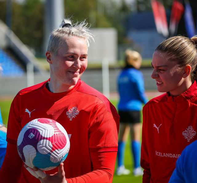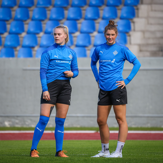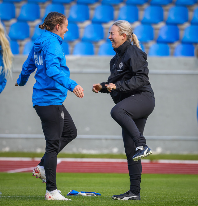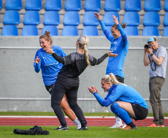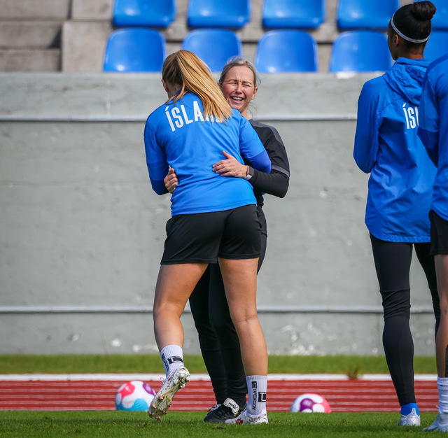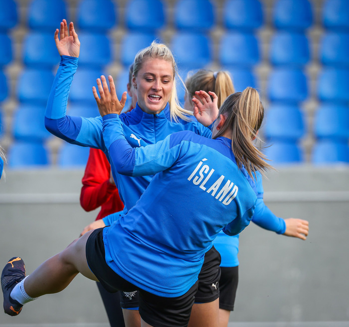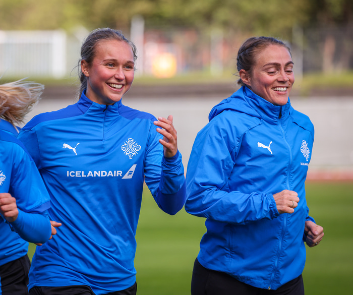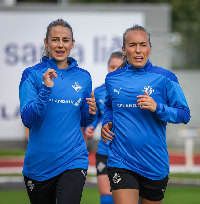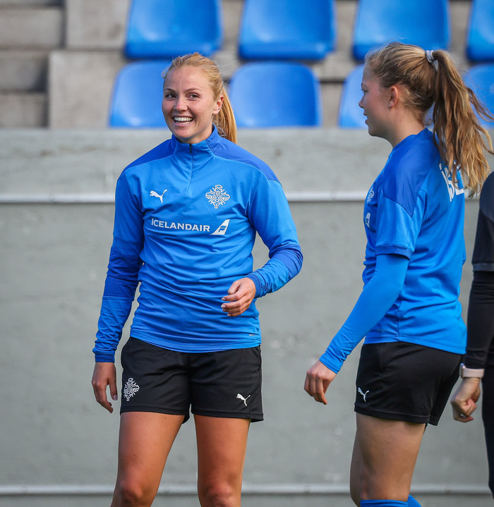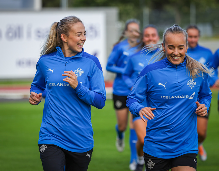 Ísland æfði í Laugardalnum í gær en þetta var fyrsta æfing liðsins fyrir Evrópumót kvennalandsliða sem fer fram í Englandi í sumar. Hér að neðan má sjá myndir af æfingunni.