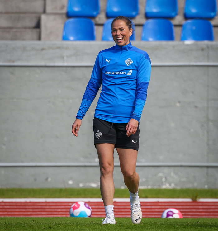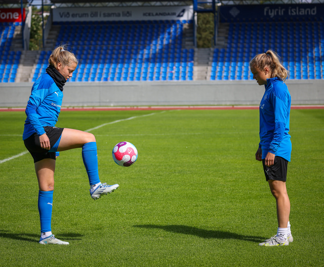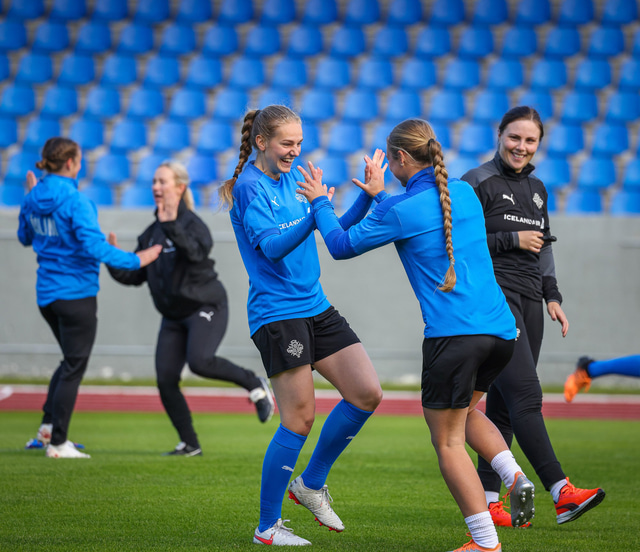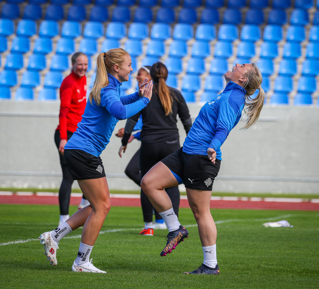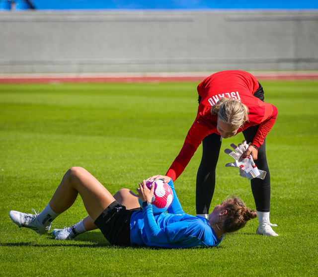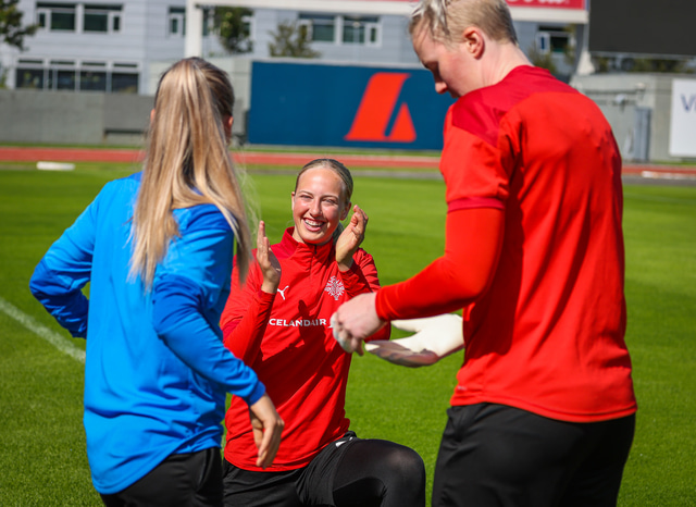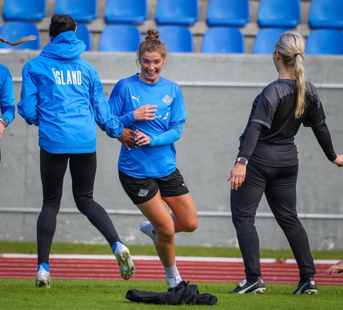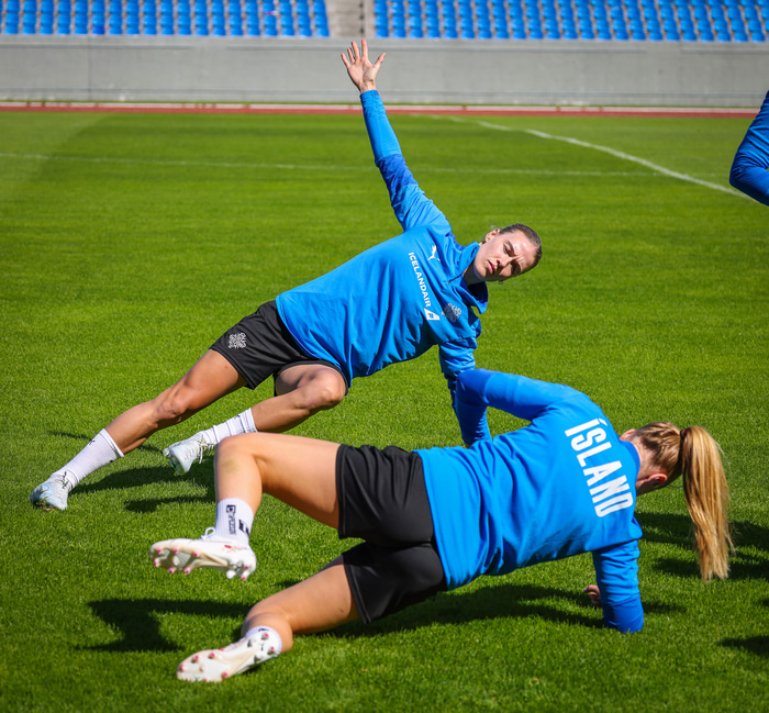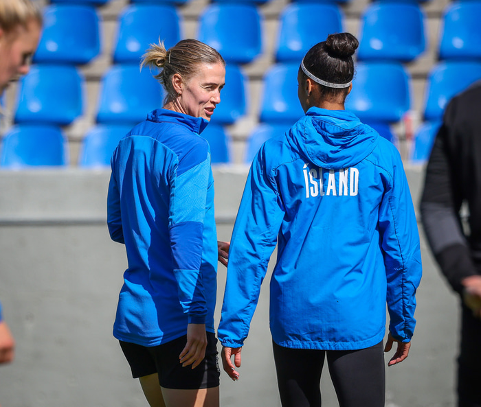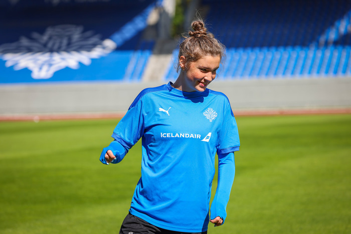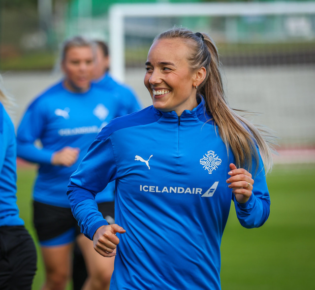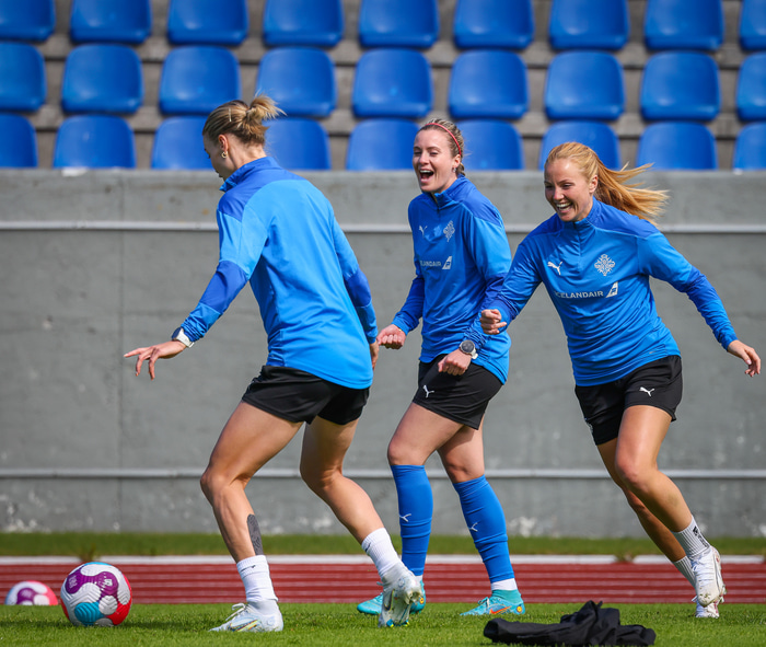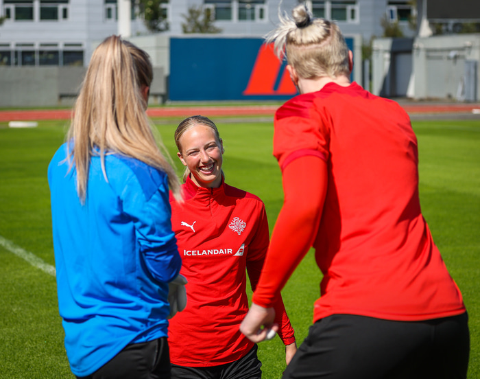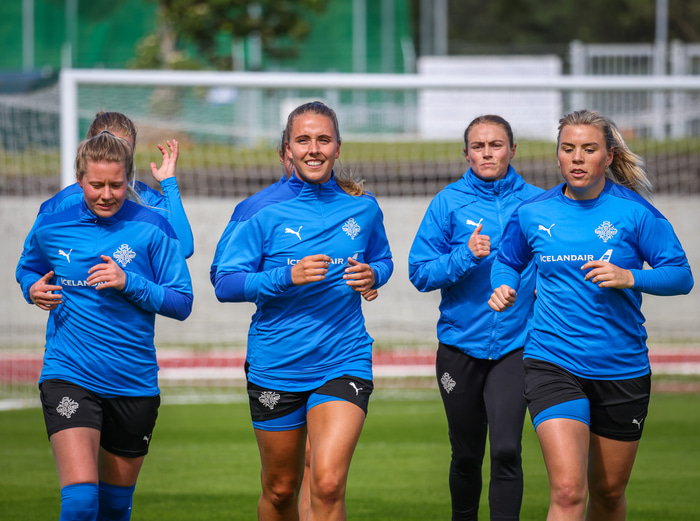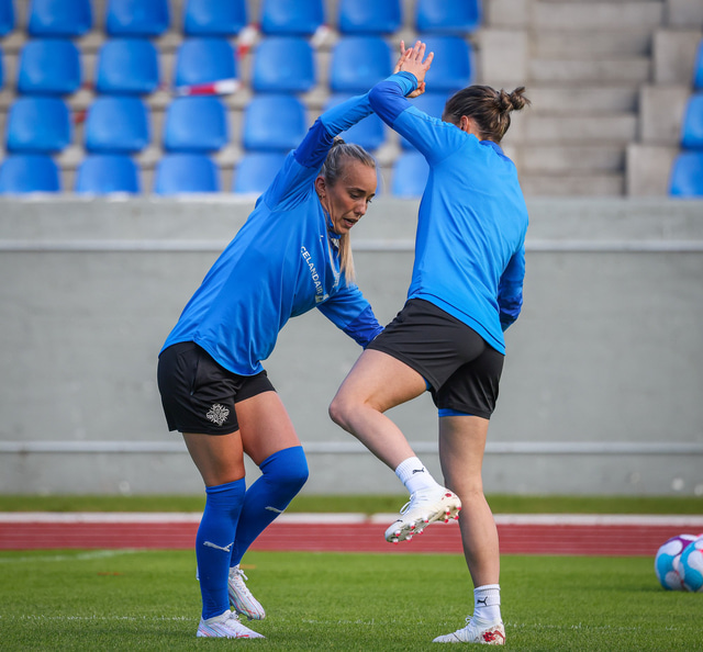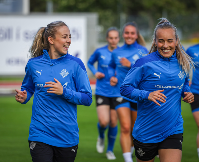Ísland æfði í Laugardalnum í gær en þetta var fyrsta æfing liðsins fyrir Evrópumót kvennalandsliða sem fer fram í Englandi í sumar. Hér að neðan má sjá myndir af æfingunni.