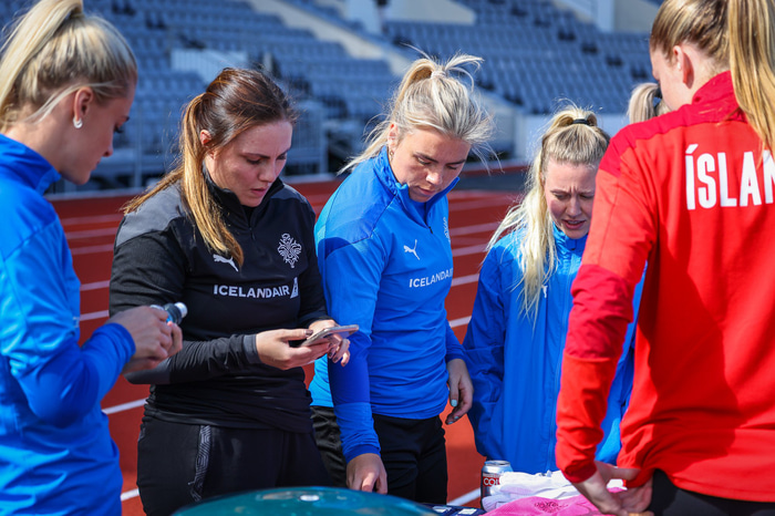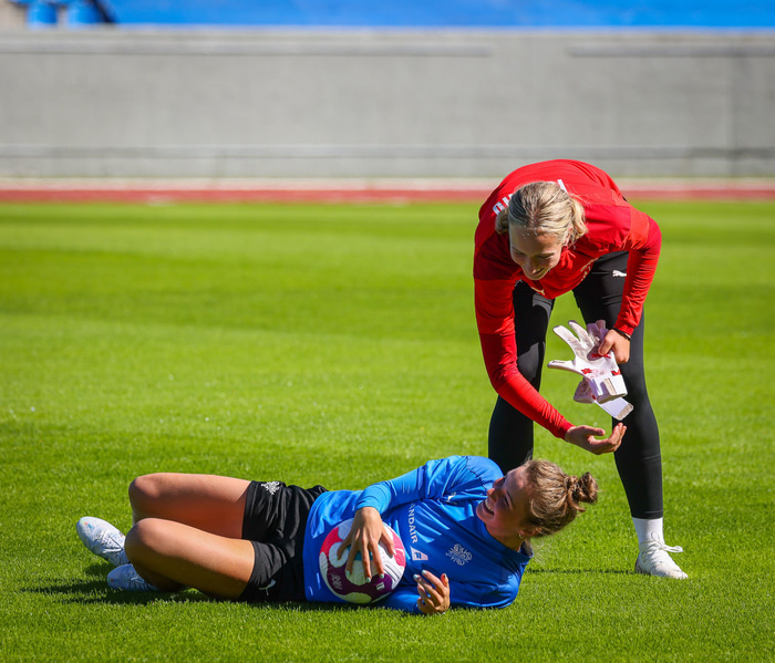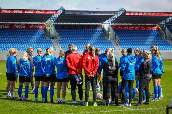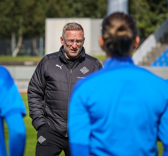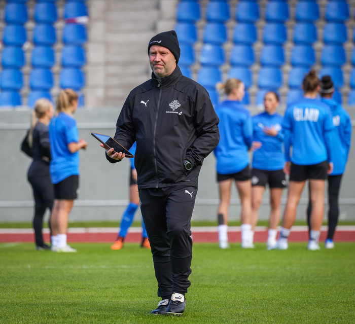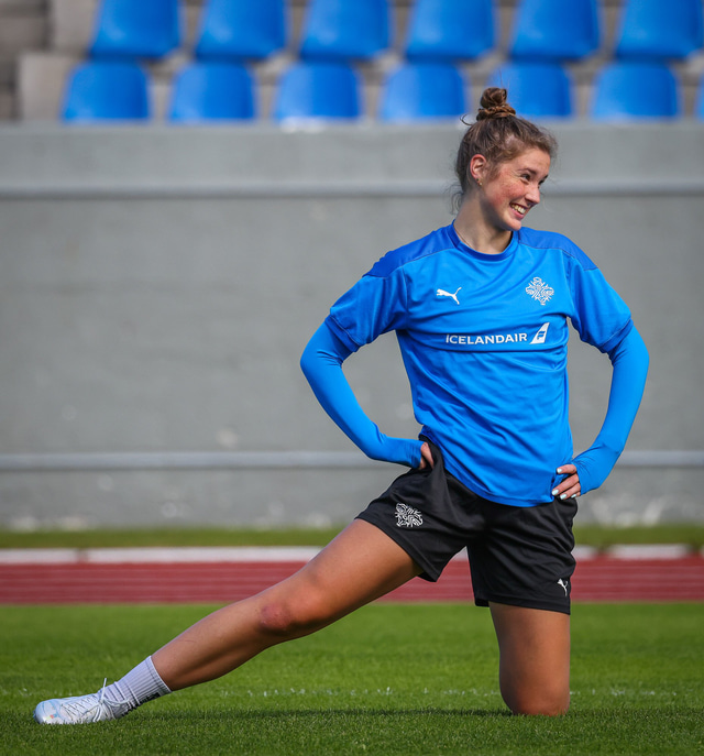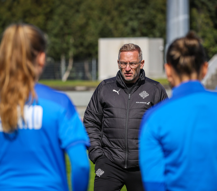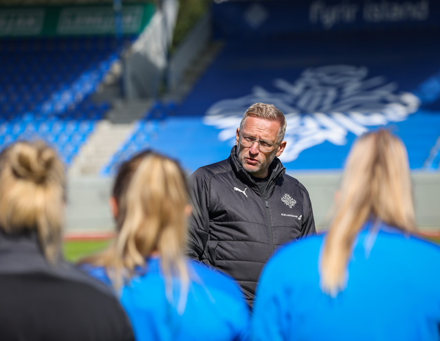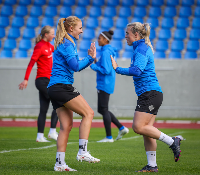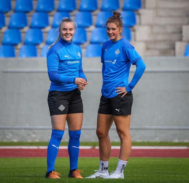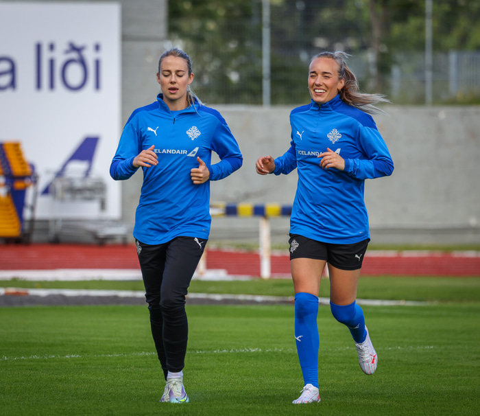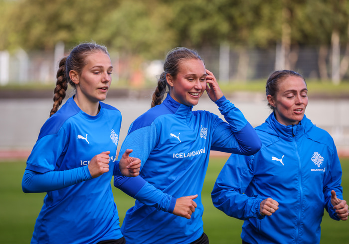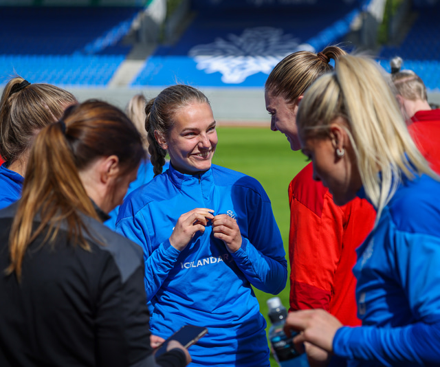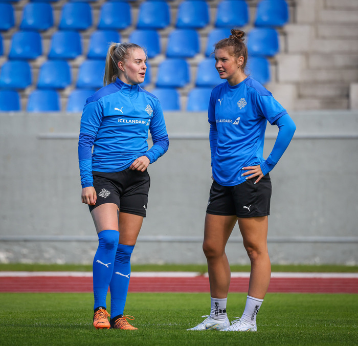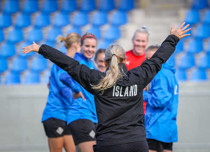 Ísland æfði í Laugardalnum í gær en þetta var fyrsta æfing liðsins fyrir Evrópumót kvennalandsliða sem fer fram í Englandi í sumar. Hér að neðan má sjá myndir af æfingunni.
