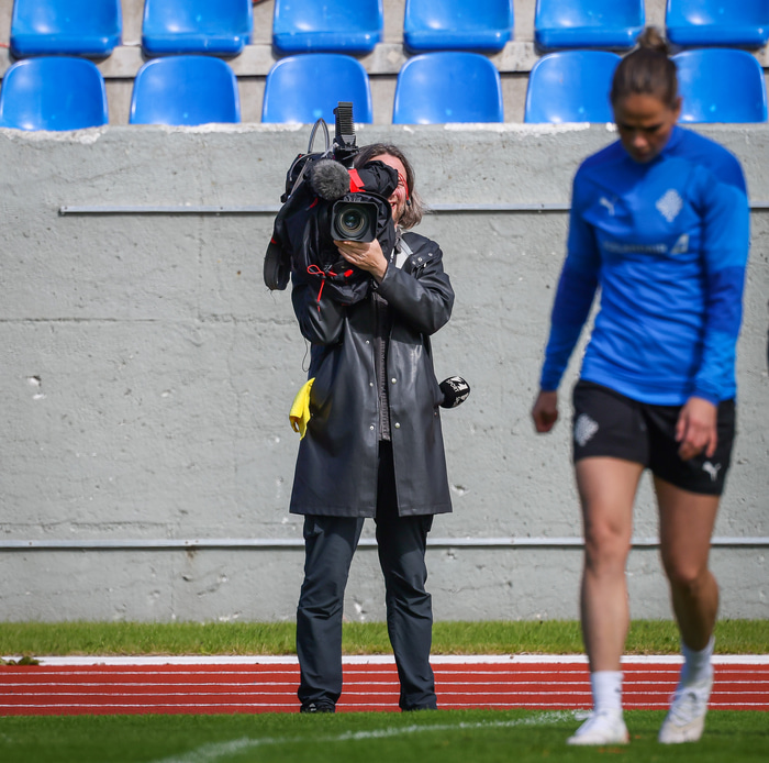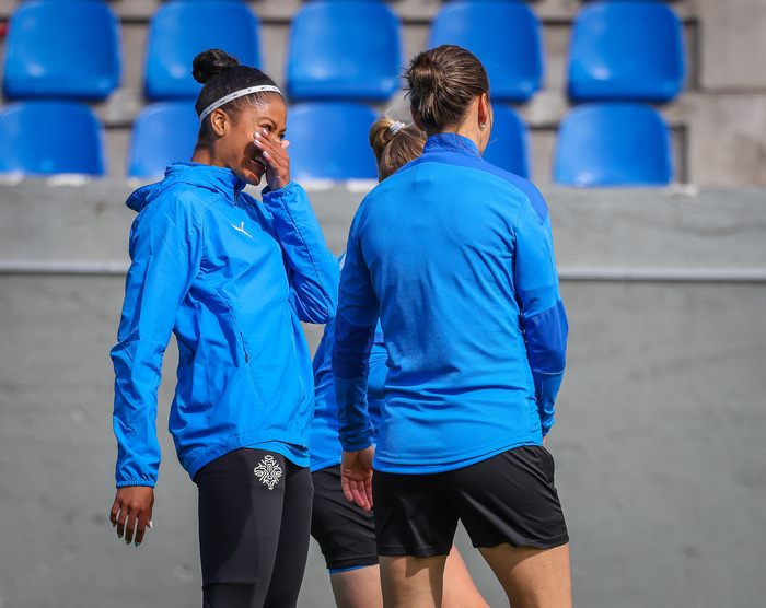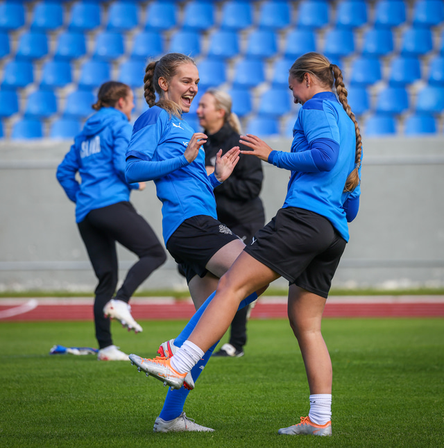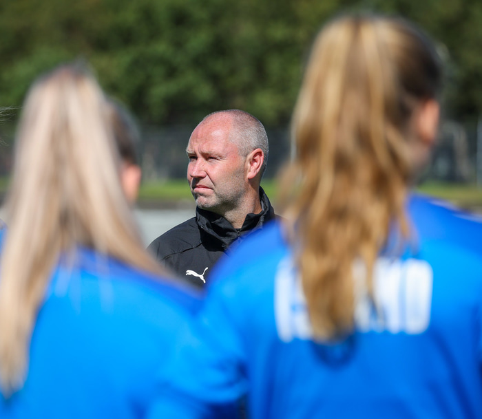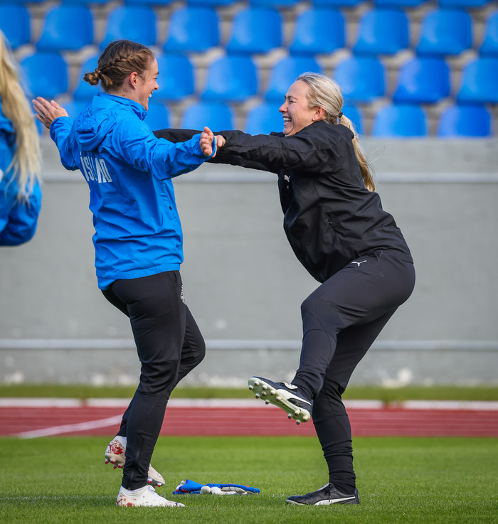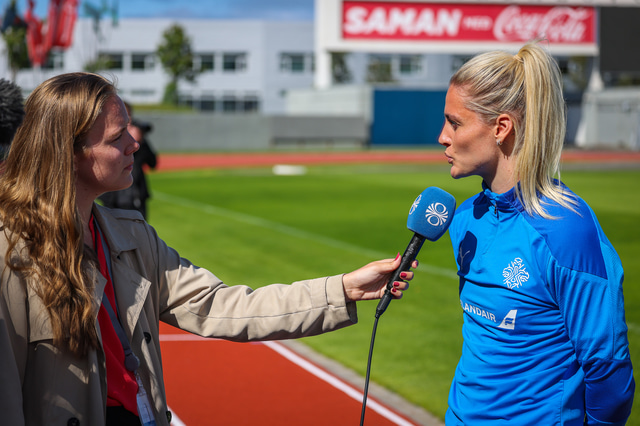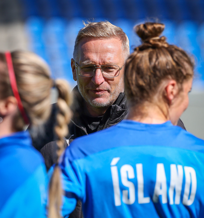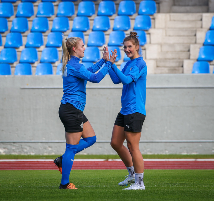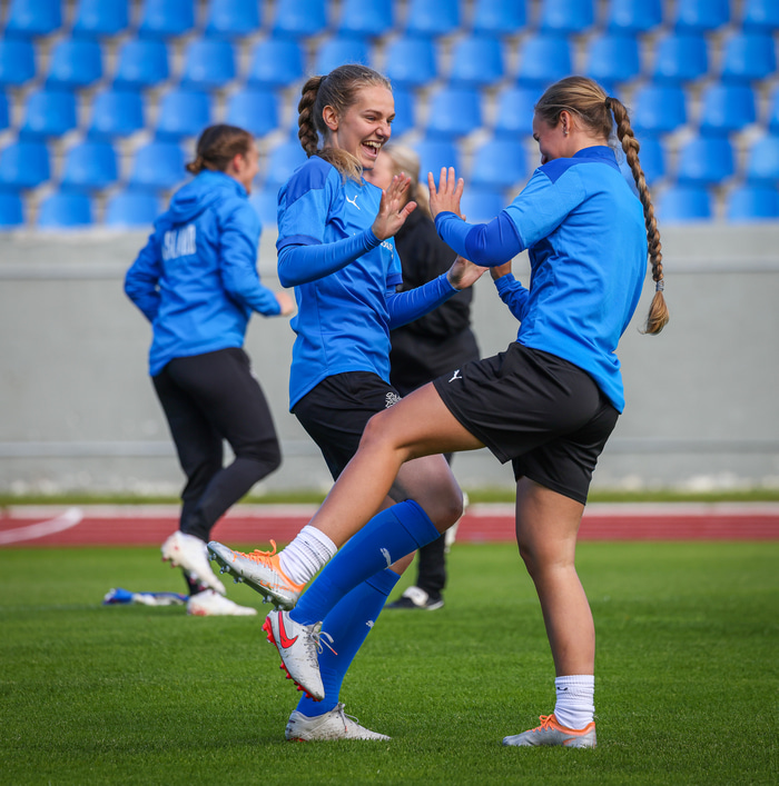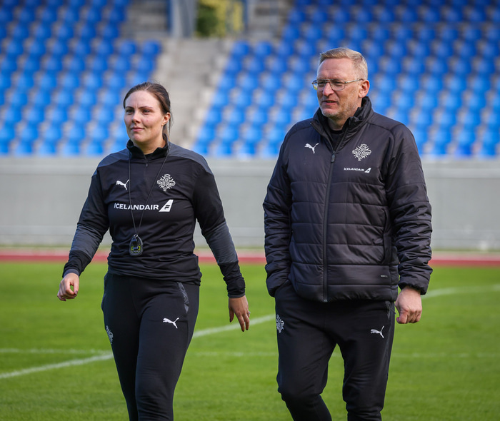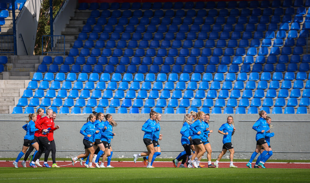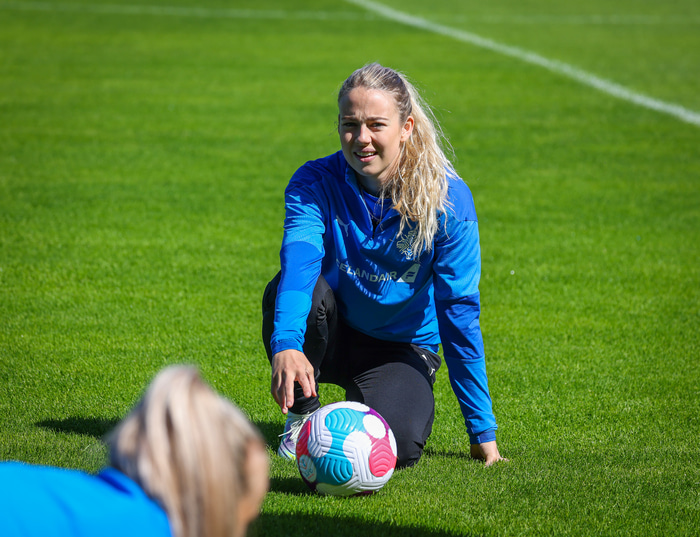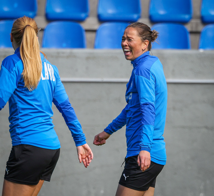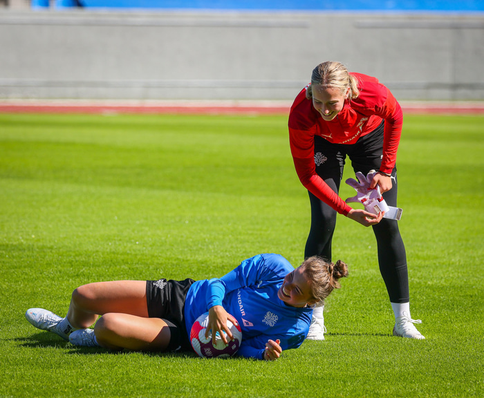 Ísland æfði í Laugardalnum í gær en þetta var fyrsta æfing liðsins fyrir Evrópumót kvennalandsliða sem fer fram í Englandi í sumar. Hér að neðan má sjá myndir af æfingunni.