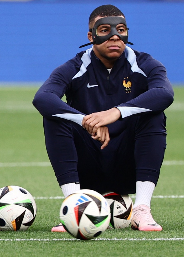 Kylian Mbappé sat allan tímann á bekknum eftir að hafa nefbrotnað í fyrstu umferð.