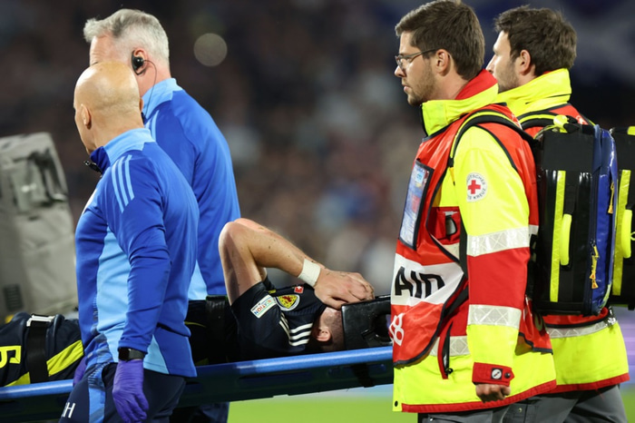 Kieran Tierney, leikmaður skoska landsliðins, var borinn af velli gegn Sviss í leik liðanna á miðvikudag. Skotar hafa staðfest að mótinu hjá Tierney sé lokið, hann verði ekki meira með.