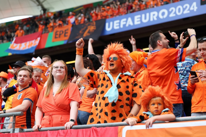 Hollendingar fjölmenntu á leikinn, enda ekki langt að fara, og heyrist stuðningur þeirra langar leiðir þar sem rúmlega hálf stúkan er appelsínugul.