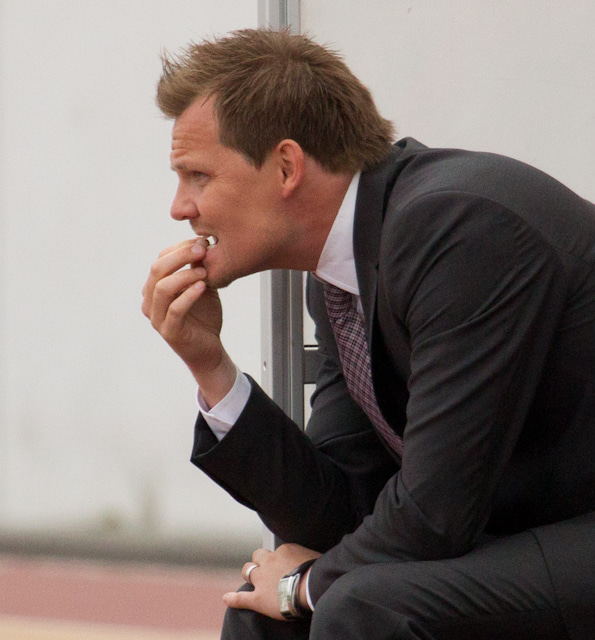 Þórhallur Siggeirsson, þjálfari Þróttar, er á sínu fyrsta ári sem aðalþjálfari í meistaraflokki og var Bjarnólfur fenginn til að aðstoða hann í þessum mikilvæga leik.