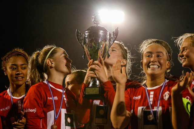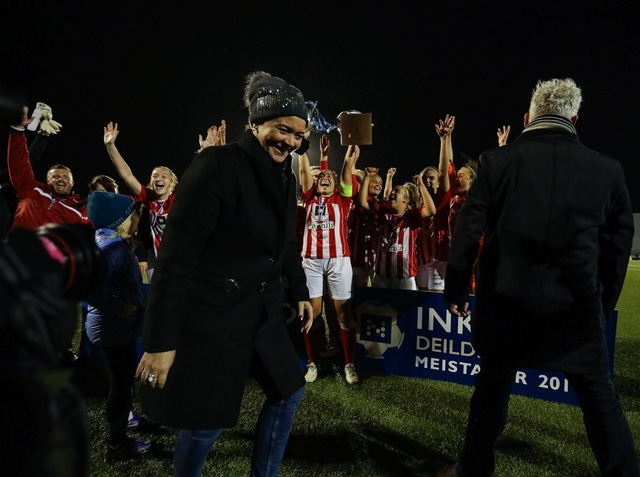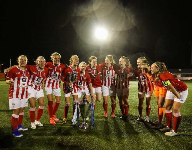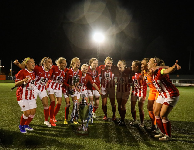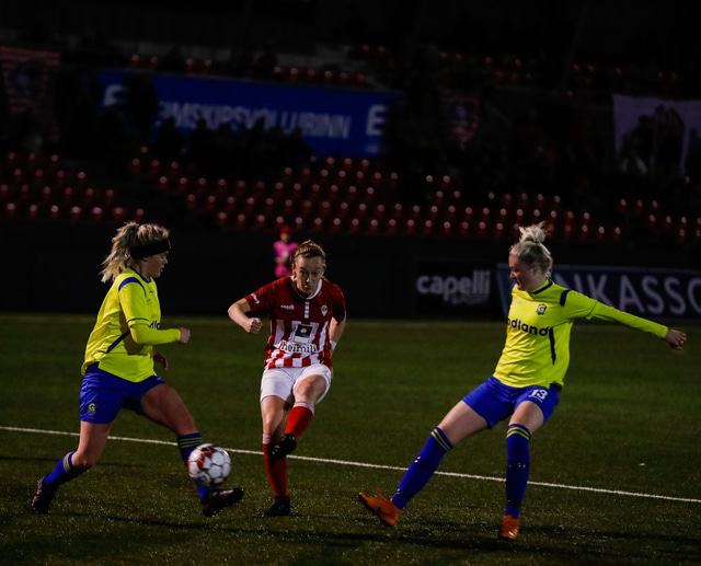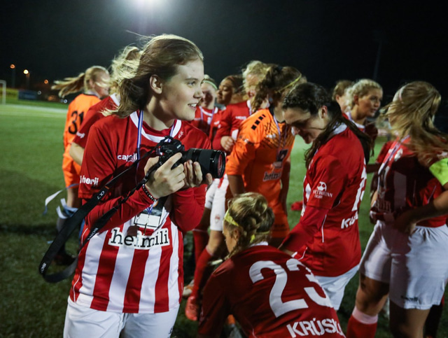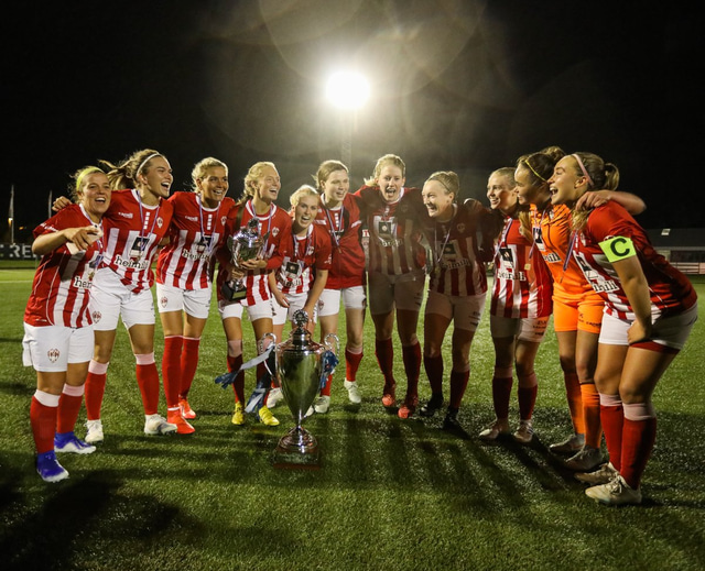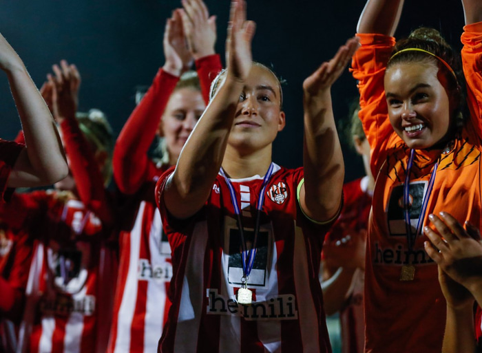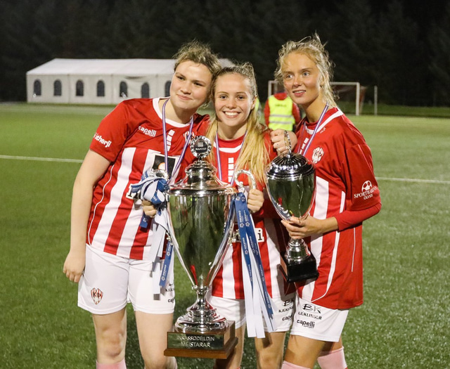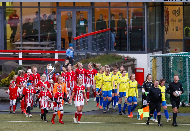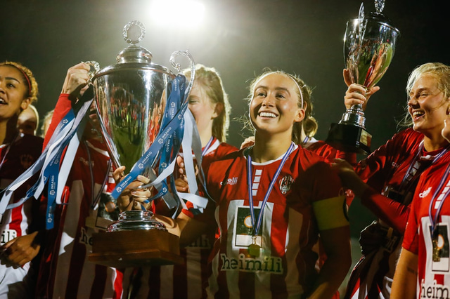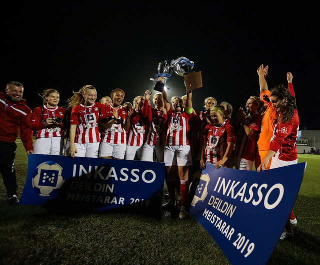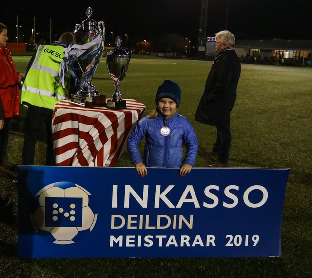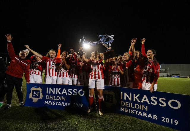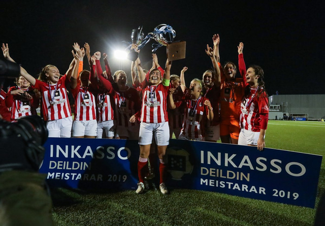 Þróttur fékk í gærkvöld afhentan bikar fyrir sigur í Inkasso-deild kvenna en liðið vann 9-0 sigur á Grindavík í lokaleik deildarinnar. Hér að neðan er fjöldi mynda úr Laugardalnum.