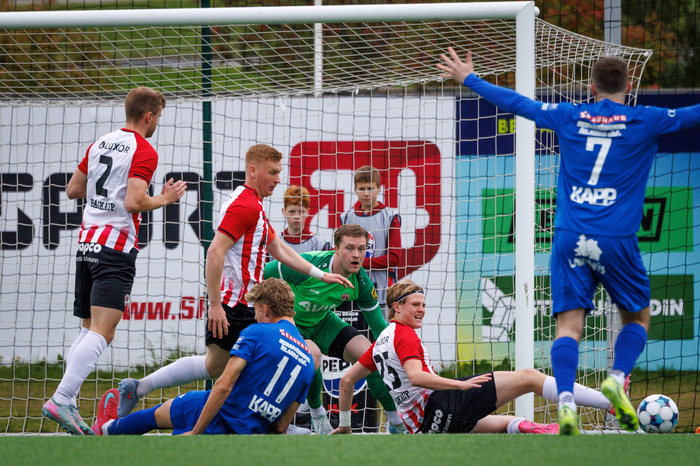 HK fékk vítaspyrnu snemma leiks þegar Jóhann Ingi Jónsson, dómari leiksins, taldi að Eiríkur Þorsteinsson Blöndal hafi brotið á Degi Orra Garðarssyni.