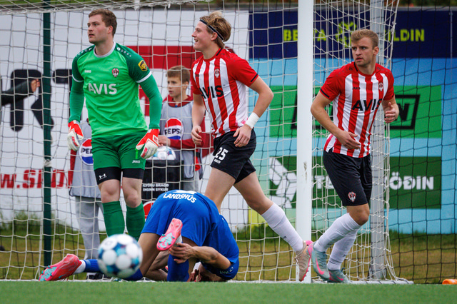 HK vann leikinn í dag 3-2 og samanlagt 7-5 og mætir Keflavík í úrslitum um sæti í Bestu deildinni. Á myndbandsupptöku virðist þetta vera kolrangur dómur þar sem Eiríkur virðist ekki fara í Dag. Hafliði Breiðafjörð var með myndavélina á lofti og náði atvikinu á filmu. Eins og sést á fyrstu myndinni er klárlega snerting.