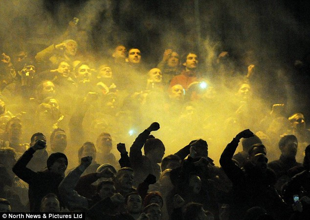 Stuðningsmenn Man Utd köstuðu einnig hlutum á völlinn en Rauðu djöflarnir enduðu á að fá lága sekt.