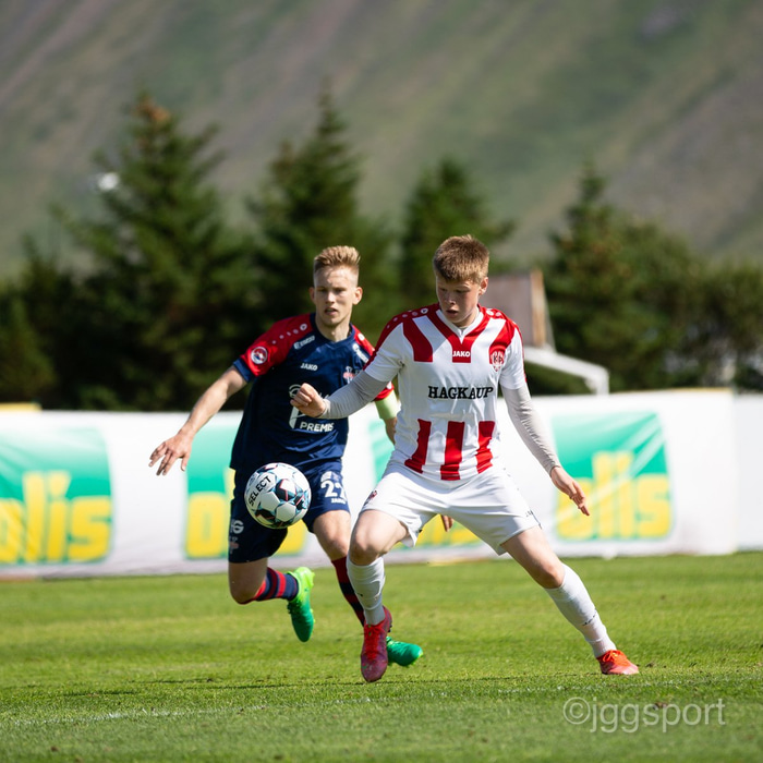 ÍR komst yfir með sjálfsmarki á 28. mínútu en Birkir Björnsson og Hinrik Harðarson snéru stöðunni við fyrir leikhlé.
