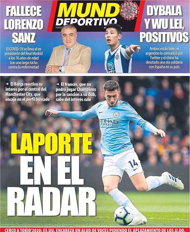 Samkvæmt spænska fjölmiðlinum Mundo Deportivo þá hefur Laporte lengi verið á óskalista Börsunga og vonast félagið til að nýta sér bann Manchester City frá Evrópukeppnum til að næla í franska miðvörðinn.